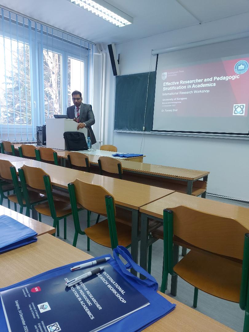On Tuesday, December 14, 2021, an International Research Workshop titled “Effective Researcher and Pedagogic Stratification in Academics“ was successfully realized as a part of the official visit of prof. dr. Farooq Sher, a guest lecturer from the University of Nottingham.