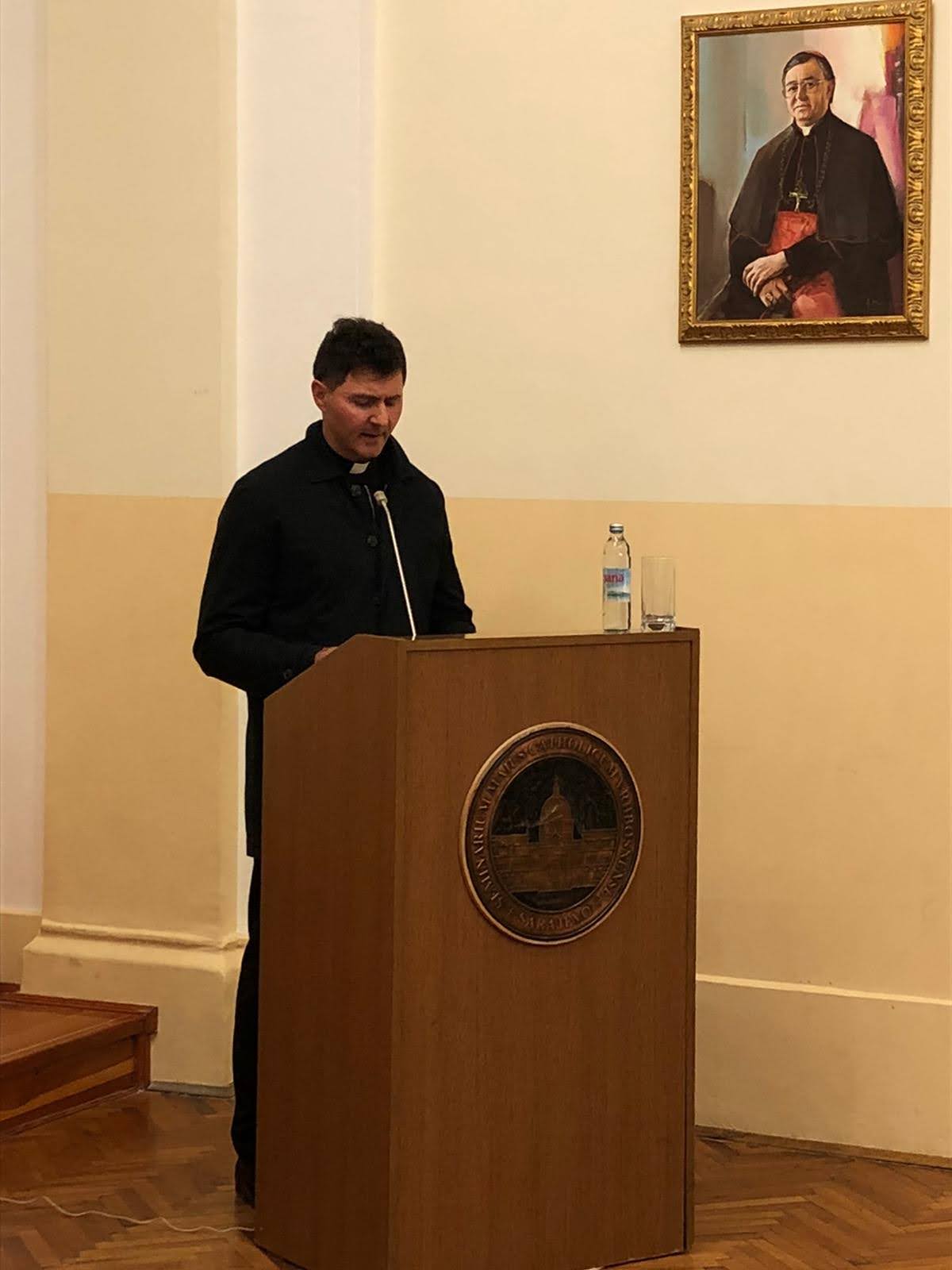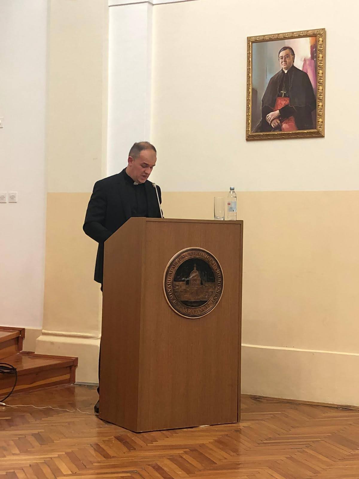 The lecture on the topic “Using the Holy Scriptures for the Holy and Fruitful Performance of Priestly Service” was given by Assoc. prof. dr. Ivan Čatić, Professor at the Department of New Testament Scripture at the Faculty of Catholic Theology in Đakovo, Josip Juraj Strossmayer University in Osijek. In his presentation, the professor spoke about the connection between the priesthood and the Holy Scriptures. Since he could not physically attend Sarajevo, he gave the lecture via video link.