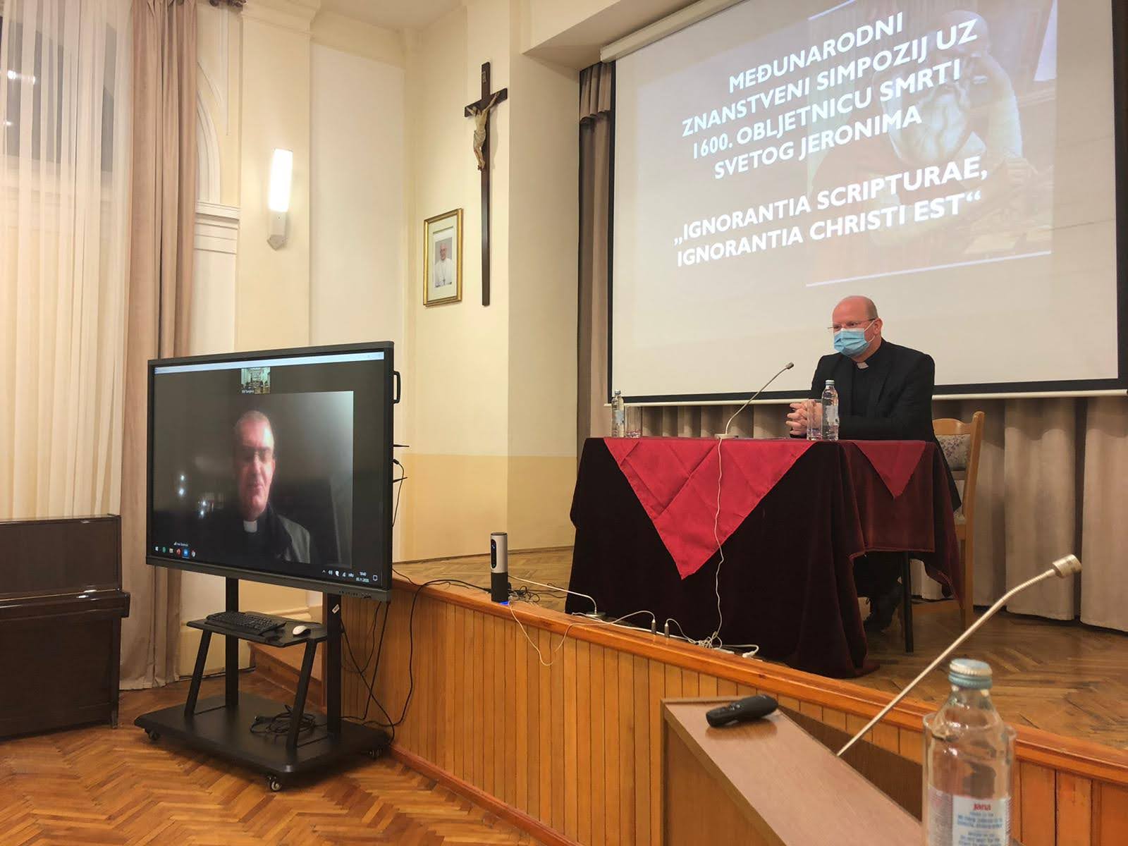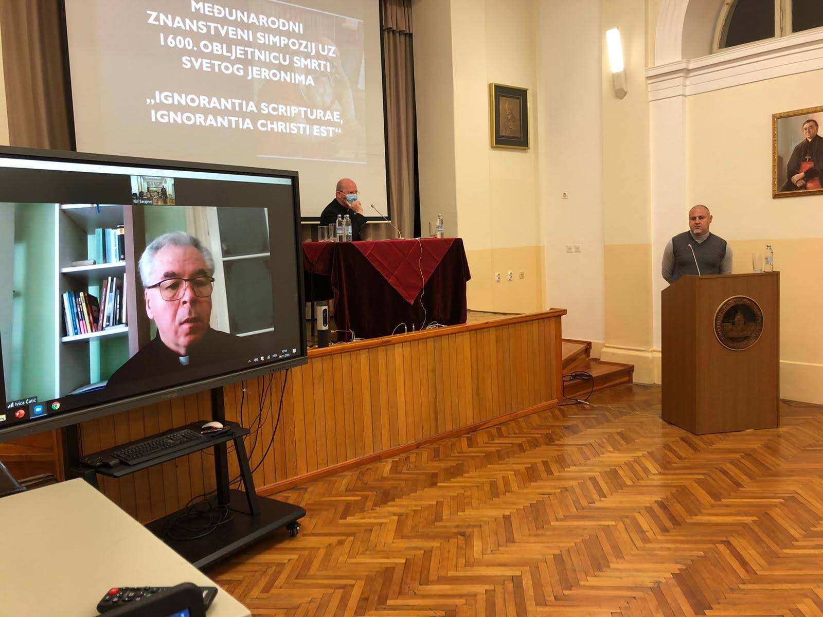 On Thursday and Friday, 5 and 6 November 2020, at the UNSA Faculty of Catholic Theology, an international symposium was held on the occasion of the 1600th anniversary of the death of St. Jerome “Ignorantia Scripturae, ignorantia Christi est”. The symposium, along with the organizers, was made possible by the Konrad Adenauer Foundation, and it is important to note that the symposium was held in accordance with all epidemiological measures and recommendations of the KS Crisis Staff. The moderator of the symposium was Doz. Dr. Josip Knežević, professor of patrology and Christian science at the Catholic Theological Faculty.