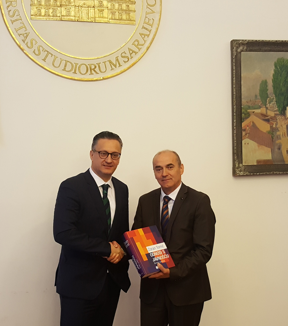 Referring to the work of the University of Mostar and the Rector's Conference of Bosnia and Herzegovina, Rector Tomić said that all public universities in BiH cope with similar problems, and have need to supplement and synergize. While pointing out that the University of Sarajevo is the most important university in Bosnia and Herzegovina with immense capacities from which other public universities have developed, Rector Tomić presented the successful cooperation of the University of Mostar Faculties with the University of Sarajevo.