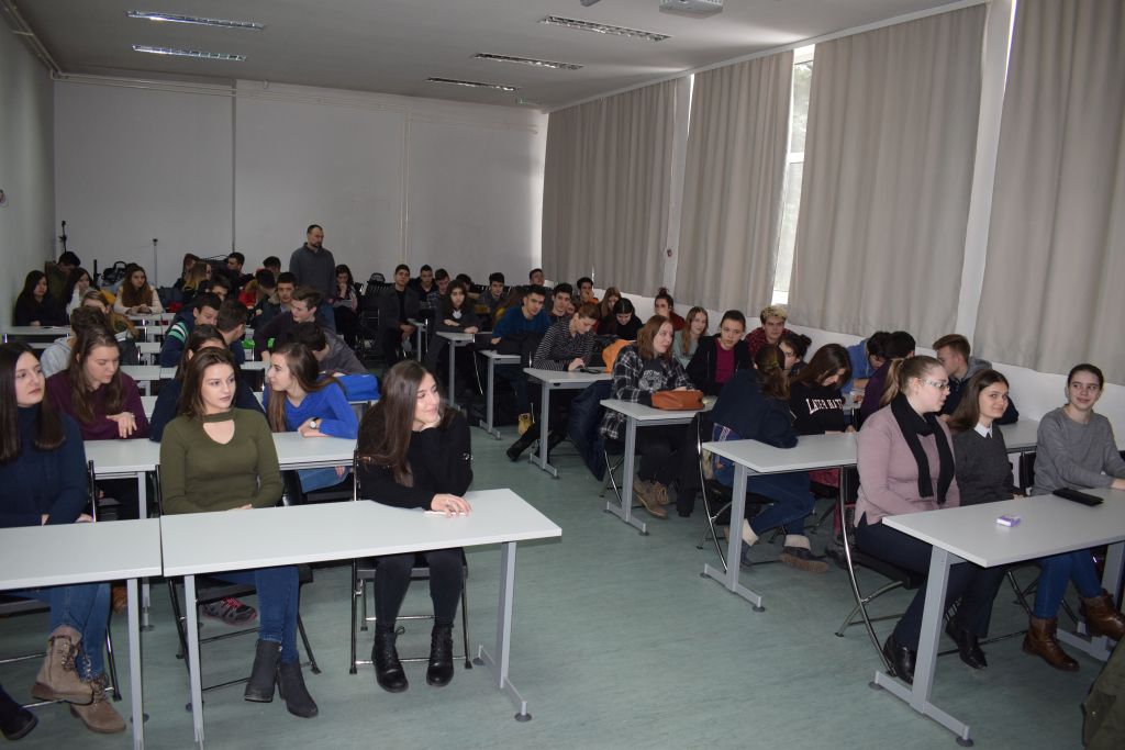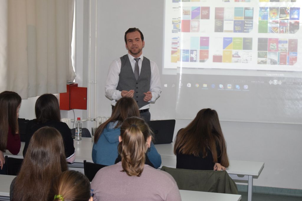 As part of the traditional cooperation between the Language Institute and Second Sarajevo Lyceum, on 23 February 2018, Institute representatives gave 100 Bosnian Dictionaries. Dr. Sc. Alen Kalajdžija, Institute Director, and Dr. Sc. Jasmin Hodžić presented for the first time the rich lexical practice in the Bosnian language, as evidenced by the fact that there are over 100 dictionaries of the Bosnian language. In addition to three descriptive-normative dictionaries, most of them are bilingual, mostly Bosnian-English and Bosnian-Turkish, but there are dictionaries of Bosnian and Dutch, Norwegian, Swedish, Italian... Other are specialized dictionaries, such as phraseological, medical , ethnographic, etc. All these dictionaries originated from 1992 to the present, representing in an average 4 dictionaries annually are a worthy presentation. On this occasion, the Language Institute received a monograph of 100 years of the Second Sarajevo Lyceum.