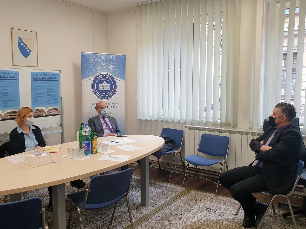 During the visit to the Language Institute, the director of the Institute Dr. Alen Kalajdžija expressed satisfaction with the visit and the opportunity to present the Institute, and presented information on the organizational structure of the Institute, human resources and key projects. It was emphasized that the mission of the Institute for Language is the development and dissemination of language culture, systematic scientific research and development of languages and language forms on the principles of scientific excellence, as well as publishing the results of work with constant education of staff for science. Also, Dr. Kalajdžija informed about the important traditional manifestation of the Language Institute - Days of the Language Institute 2021, which is held from 21 February to 21 March and this year it was organized in an online format. He announced the jubilee 50th anniversary of the Language Institute to be celebrated next year.