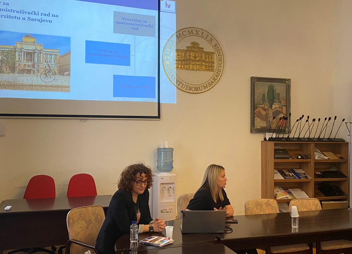 The meeting also presented data on project activities at the University and support activities provided to researchers by the Centre for Research and Development and the Service for Research and Development. The importance of leading institutions in Bosnia and Herzegovina, including the University of Sarajevo, was emphasized in the context of participation in European funds for research and higher education, as well as available domestic programs for funding research activities.