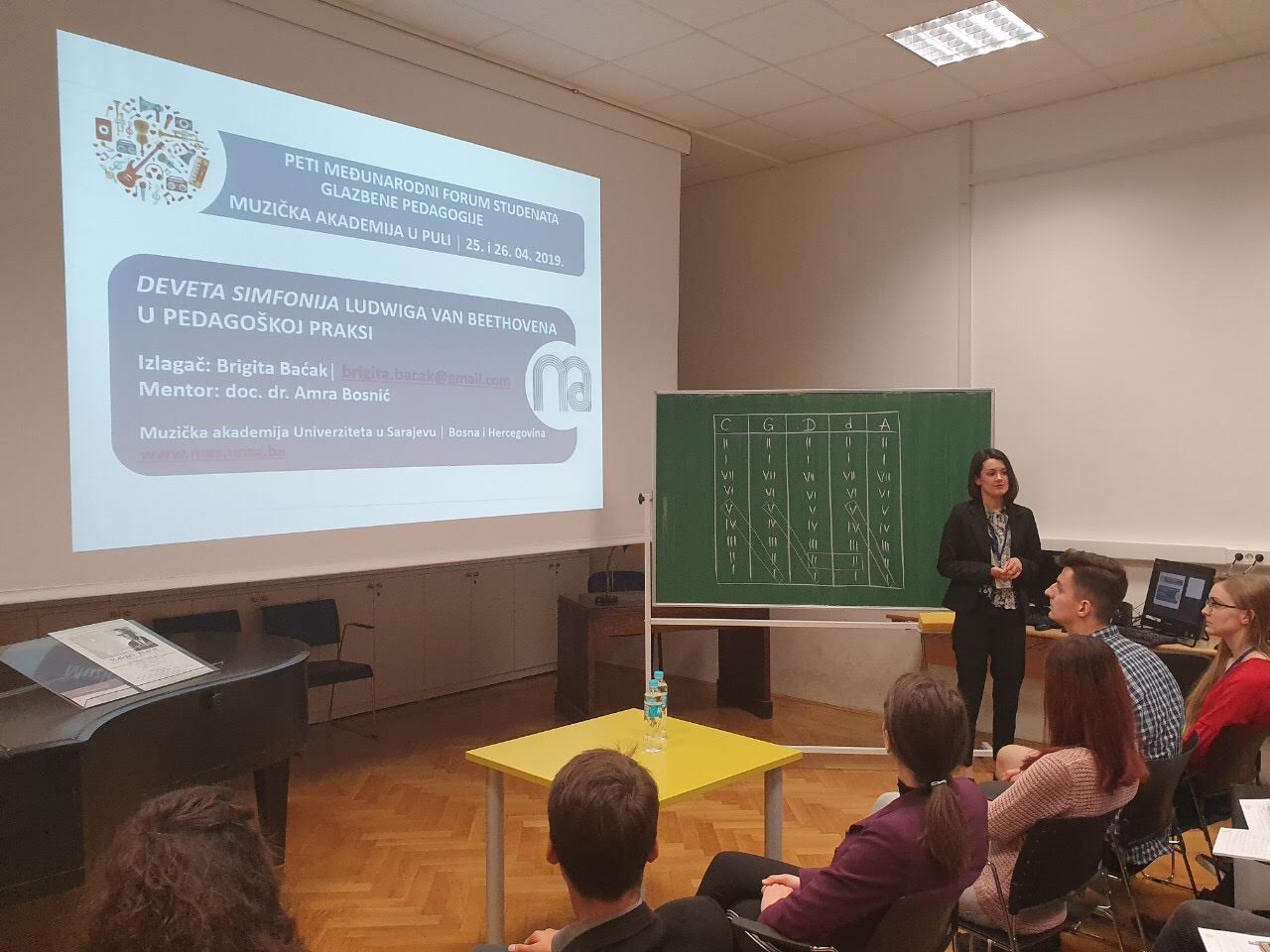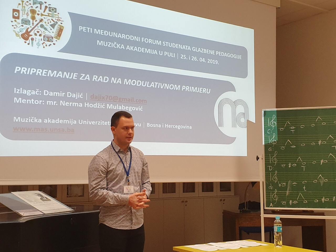 Students of the Department of Music Theory and Pedagogy, UNSA Music Academy Brigita Baćak and Damir Dajić participated at the Fifth International Forum of Students of Music Pedagogy, held on 25 and 26 April 2019, at the Music Academy of the University of Juraj Dobrila in Pula.