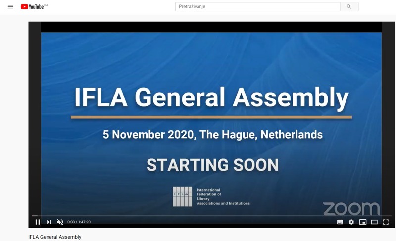 This online IFLA General Assembly was also attended by the National and University Library of BiH Director, Dr. Ismet Ovčina. NUBBiH is an active member of IFLA, and Dr. Ovčina was a member of the IFLA Standing Committee on National Libraries from 2011 to 2019.