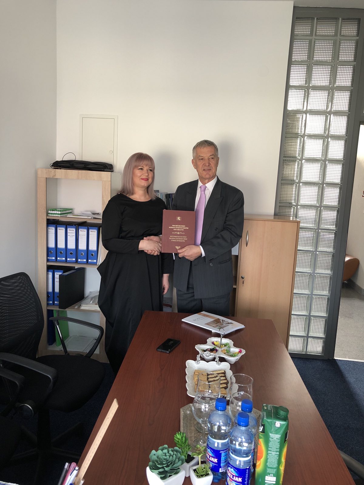 Mrs. Mujanović and Dr. Ovčina discussed common topics concerning the regular functioning of the Library, as well as models and methods of overcoming barriers to work, and in general, improving the quality of work and improving the profession in the local community in which the Library operates.