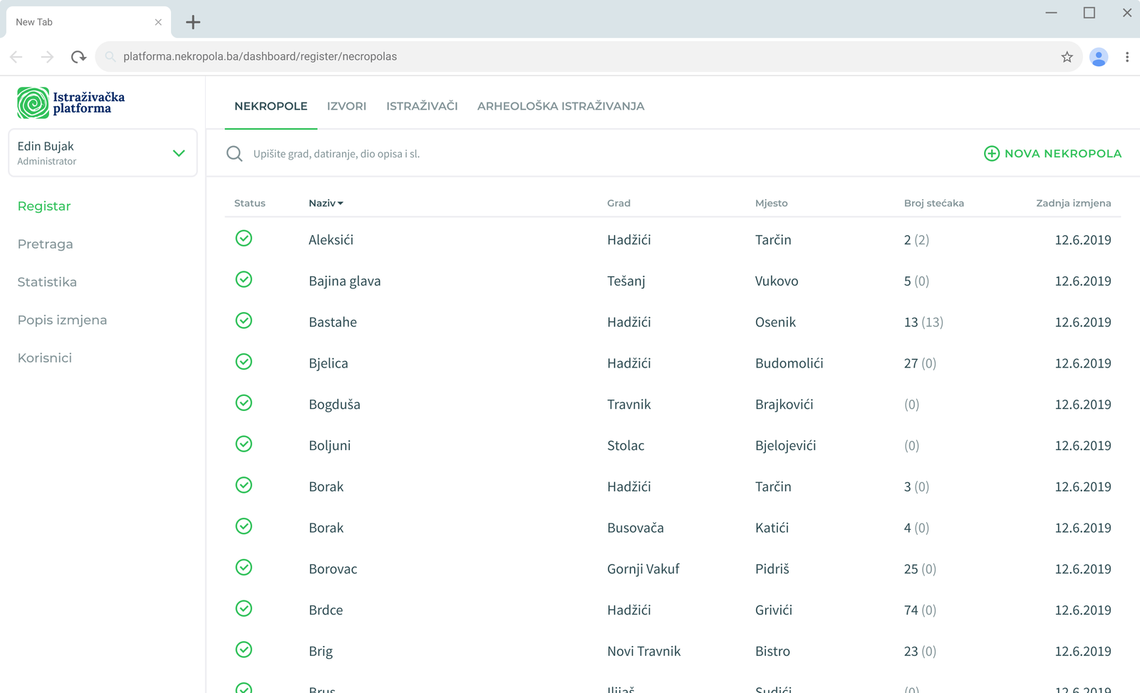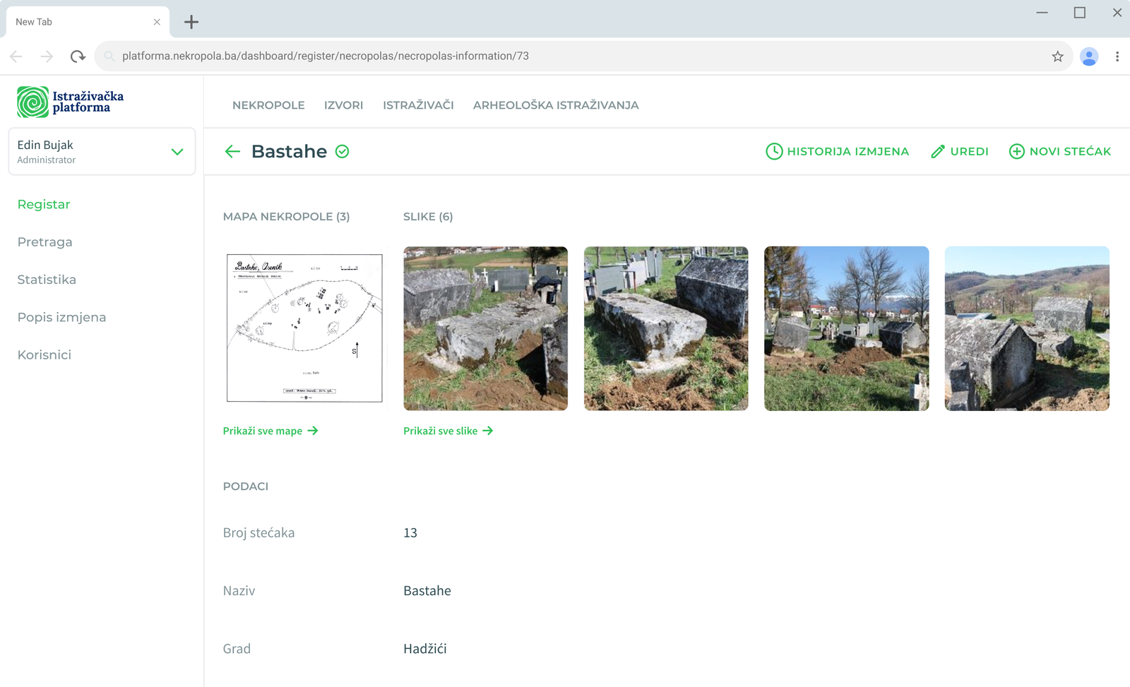 The nekropola.ba research platform was realized under the partnership of the Institute of Archeology, Faculty of Philosophy, University of Sarajevo, and the software company Klika and available for user downloads from App Store or Google Play.