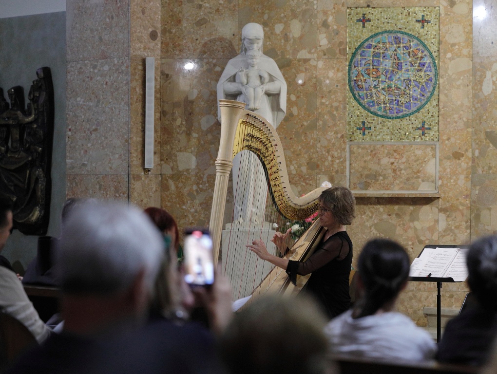 The program, which was prepared under the mentorship of subject professor Jasenka Ostojić, opened with the composition A Ceremony of Carols op. 28 for women's choir and harpB. Britten performed by the MAS women's choir and soloist soprano Jovana Pavlović and mezzo-soprano Hanadi Karić, a student of the Department of Solo Singing MAS in the class of Prof. Vedrana Šimić, and Diana Grubišić Ćiković, eminent harpists and professors at the Music Academy of the University of Zagreb, who subsequently interpreted R. Glière's Imromptu and M. Tournier's Au matin.