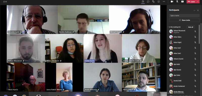 At the webinar, the awarded students Enida Dučić, Mirsad Ugarak, Amila Mrkonja and Nedim Kaliman presented their essays, followed by a discussion on complex issues of international criminal law. In their essays, and during the interviews, answering the questions asked, the awarded students showed an enviable level of knowledge, research enthusiasm and interest in legal studies in the broadest sense of the word.