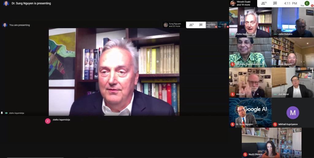 At the invitation of Nguyen Tuan, founder of the initiative of the World Society of Artificial Intelligence and the Global Boston Forum, the first of 8 speakers after the founder of the Internet, Professor Cerf, was Dr. Zlatko Lagumdžija, professor at the Faculty of Economics in Sarajevo. His presentation was dedicated to the establishment of the Global Management Network by Artificial Intelligence for the purpose of inclusive digital transformation, the future of democracy and societies of common values.