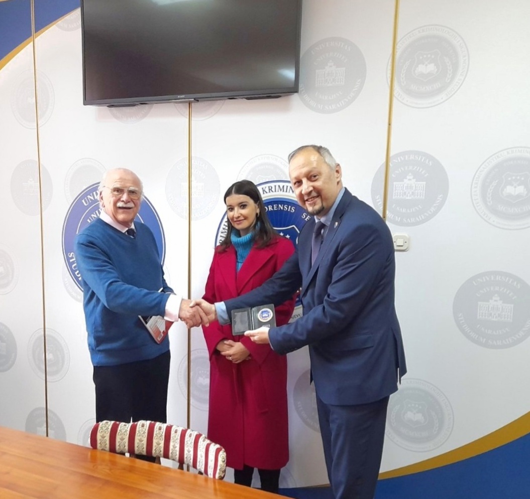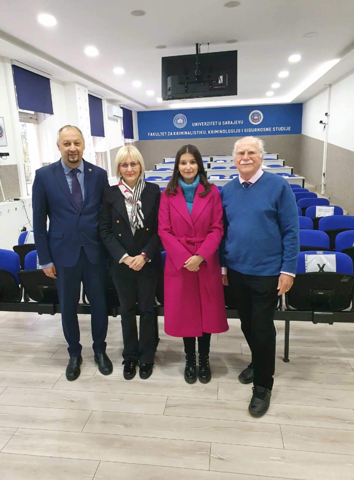 On 18 April 2022, the Faculty of Criminalistics, Criminology and Security Studies, University of Sarajevo had the exceptional honor and pleasure to host Professor Emeritus Ray Bull, one of the world's most famous and recognized experts in the field of interrogation of suspects, interrogation of witnesses, interrogation witness memory, including voice recognition of persons. The distinguished professor was hosted by Faculty Dean, Prof. Dr. Sc. Jasmin Ahić, Vice Dean for Science Prof. Dr. Sc. Lada Sadiković, Prof. Dr. Sc. Irma Deljkić and senior assistant Dr. Sc. Adnan Fazlić. During the visit, Professor Emeritus Bull had the opportunity to get acquainted with the current activities, projects and resources available to the Faculty, as well as possible forms of mutual cooperation.