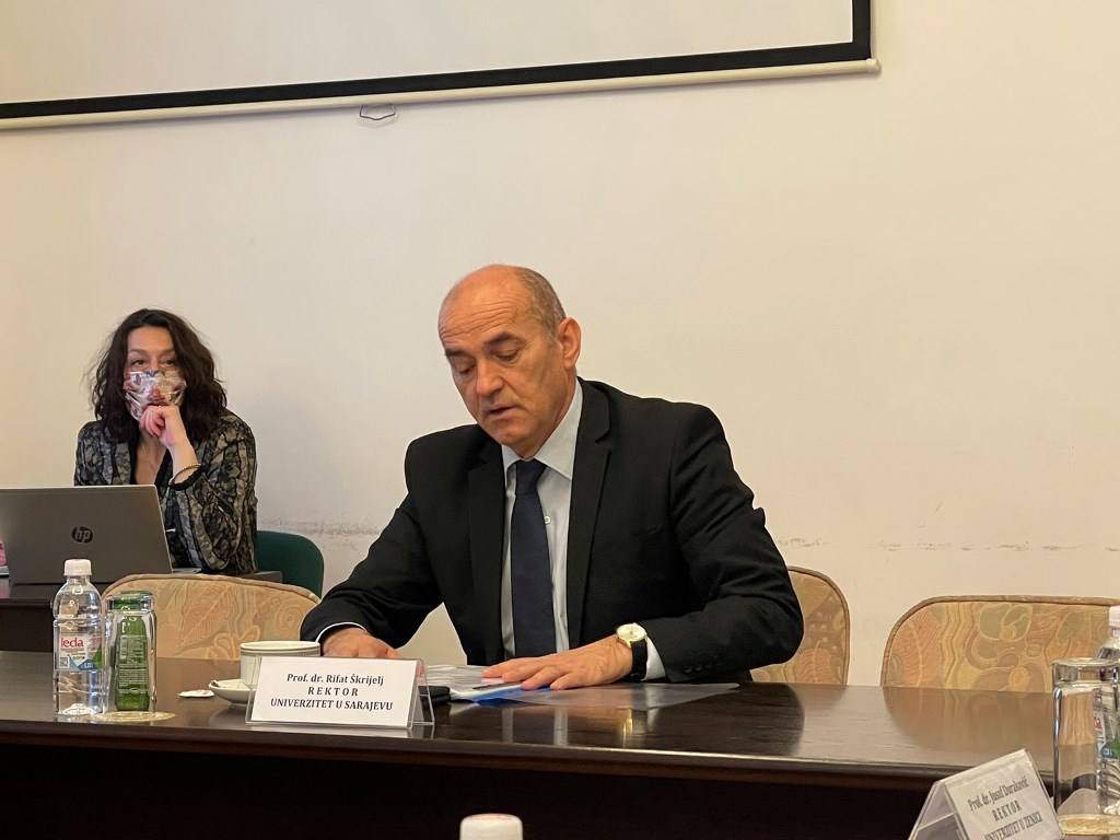 The University of Sarajevo, which took over the chairmanship of the Rectors' Conference of Bosnia and Herzegovina from the University of Zenica on 1 January 2022, hosted the first working session held on 8 February 2022. The session was chaired by Prof. Dr. Rifat Škrijelj, University of Sarajevo Rector and new Rectors' Conference of BiH president in 2022.