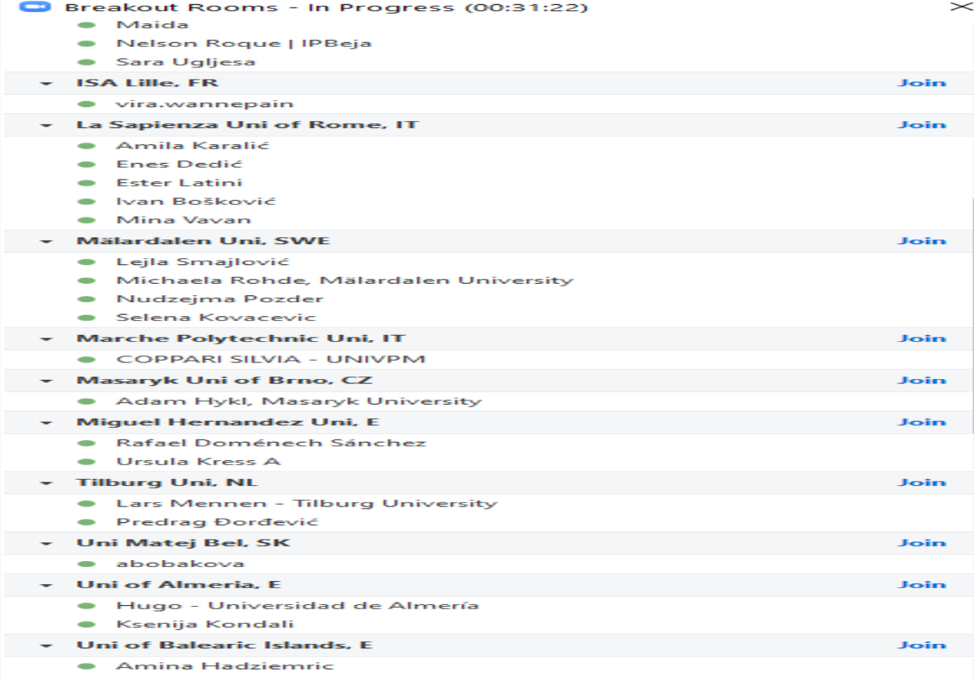 On the second day, we invited representatives of higher education institutions whose calls are open to talk live with our students and staff about mobility opportunities. Using the advantages of virtual applications, each foreign partner institution had its own "room" in which all interested parties could enter, meet and ask about mobility, and thus obtain the necessary information to make their application successful.
