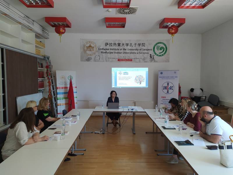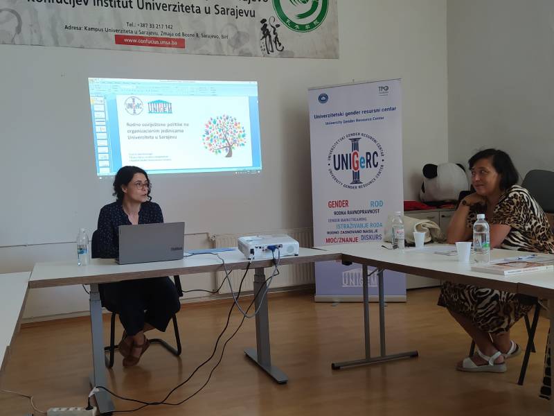 During May and June 2022, six trainings for non-teaching staff “Gender-aware policies in the organizational units of the University of Sarajevo”, organized by the Council for Gender Equality UNSA and UNIGeRC were held. The lecturers were professors from the University of Sarajevo, who are also members of the UNSA Gender Equality Council, and a total of 60 people from almost all organizational units of the University of Sarajevo were trained.