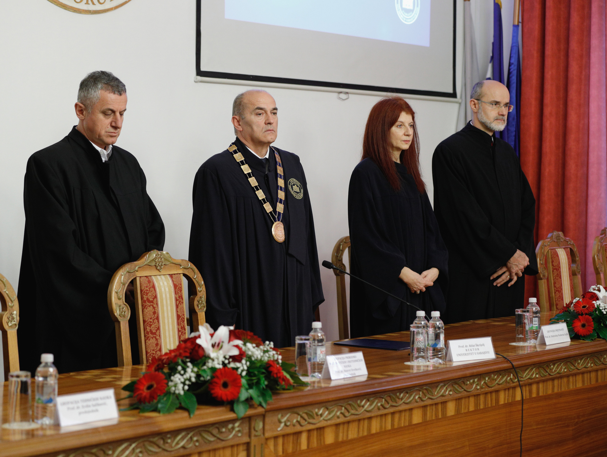 “As today's ceremony is part of the celebration of the anniversary of the University, I want to remind you that 73 years ago, when it was founded, the University of Sarajevo was the first university in Bosnia and Herzegovina. It is the alma mater of all public universities in Bosnia and Herzegovina and is the largest and most important university in our country. The year we are concluding is marked by ceremonies, but also by serious strides, especially regarding the development of capital infrastructure, where we are expected to sign a contract on the construction of the University Library, as well as the final determination of the master plan of the University Campus. Ahead of us is a very significant period in the development of the University, and I am very happy that we will join forces in this action with exceptional personalities to whom today's ceremony is dedicated,” said Rector Škrijelj.
