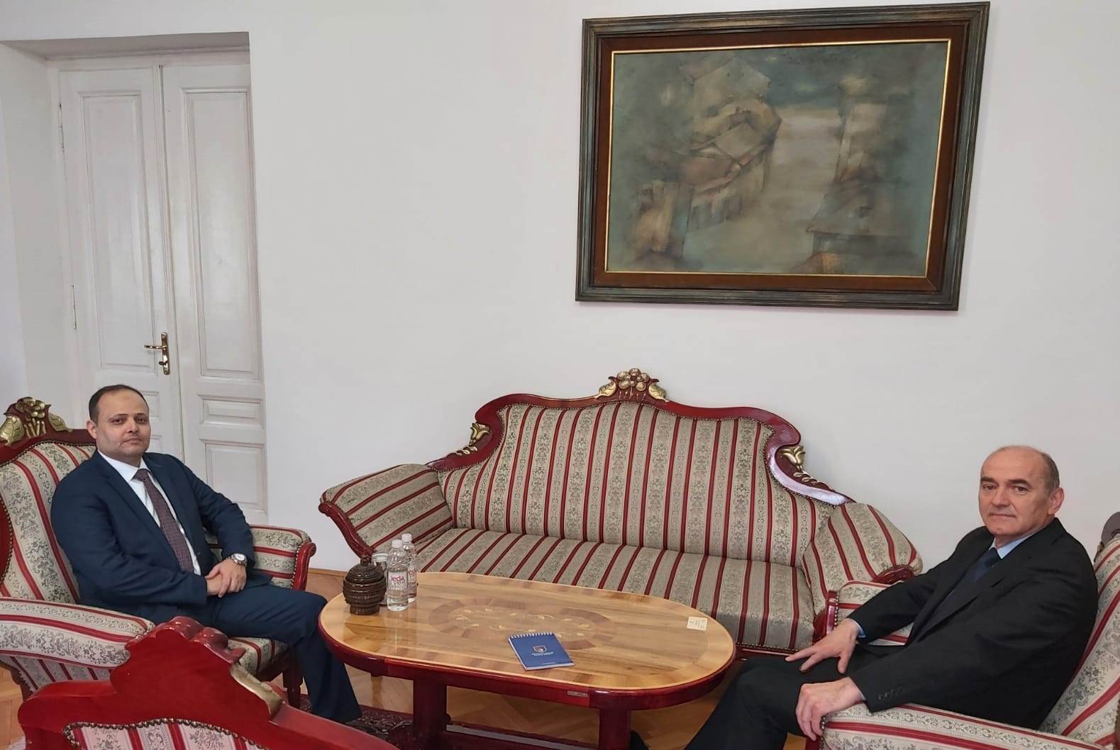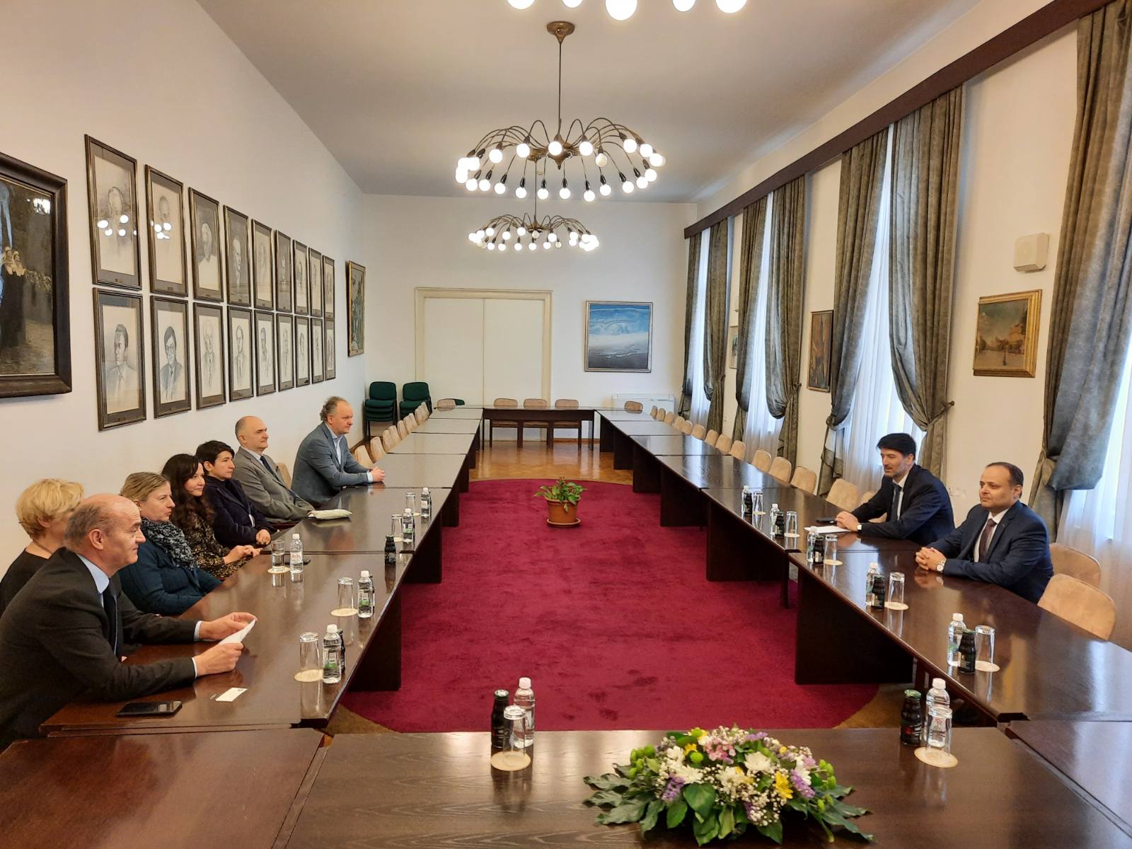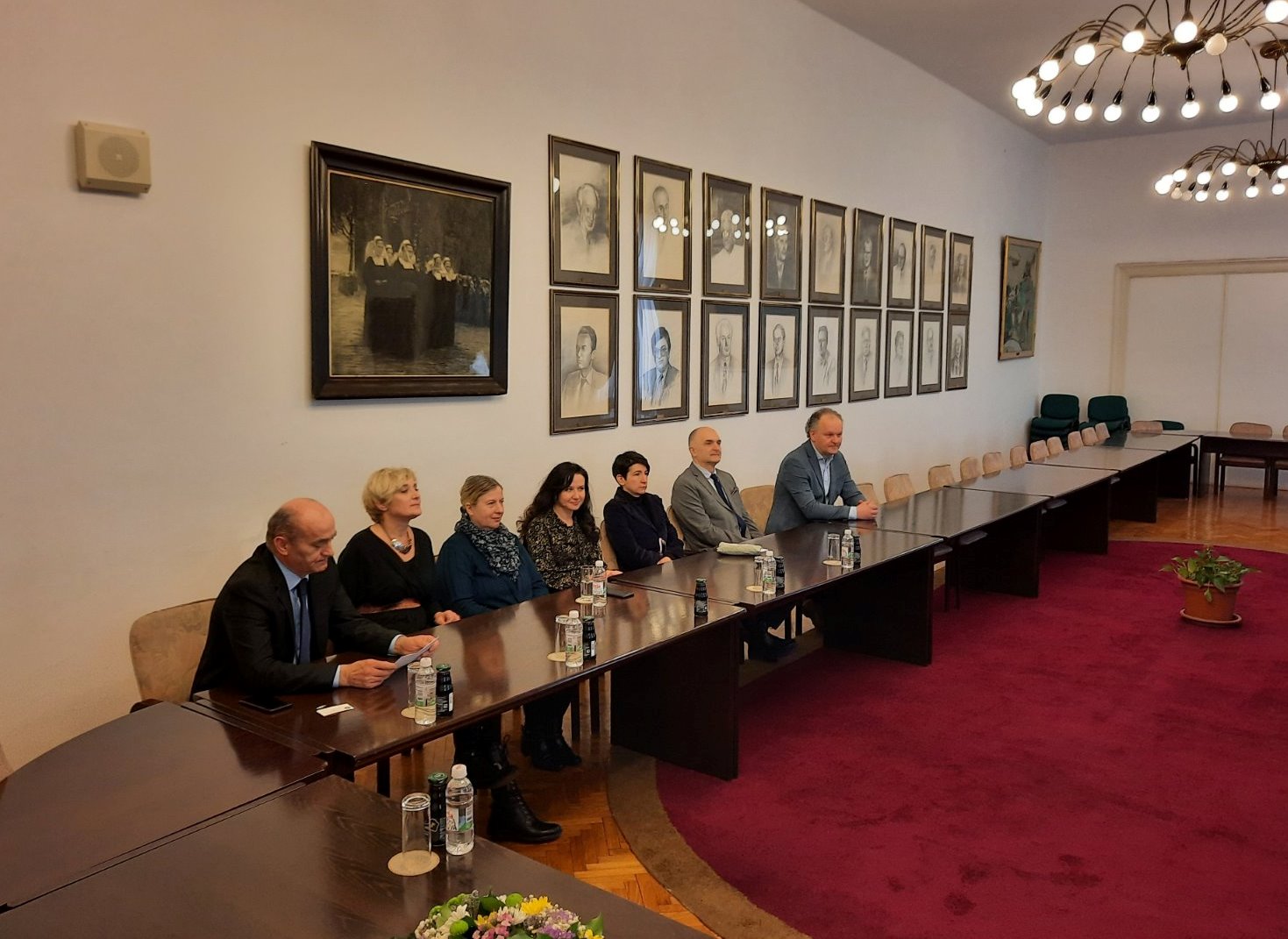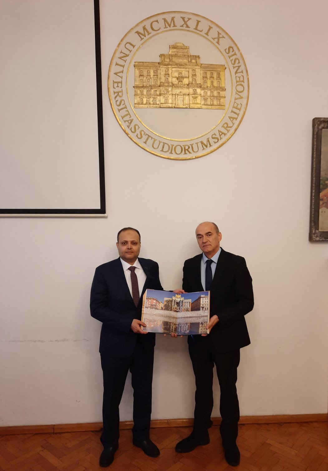 The University of Sarajevo today hosted in its first official visit H.E. Mr. Osama bin Dakhil Al-Ahmadi, Ambassador of the Kingdom of Saudi Arabia in Bosnia and Herzegovina. H.E. Ambassador Al-Ahmadi were addressed in a welcome address by Prof. Dr. Rifat Škrijelj, University of Sarajevo Rector, at the head of a numerous University delegation consisting of Vice-Rectors, as well as members of the University of Sarajevo team for the construction of the Library of the University of Sarajevo, as the largest post-war investment project at the University, which is financed by the Kingdom's donor funds of Saudi Arabia and the Saudi Development Fund (SDF).
