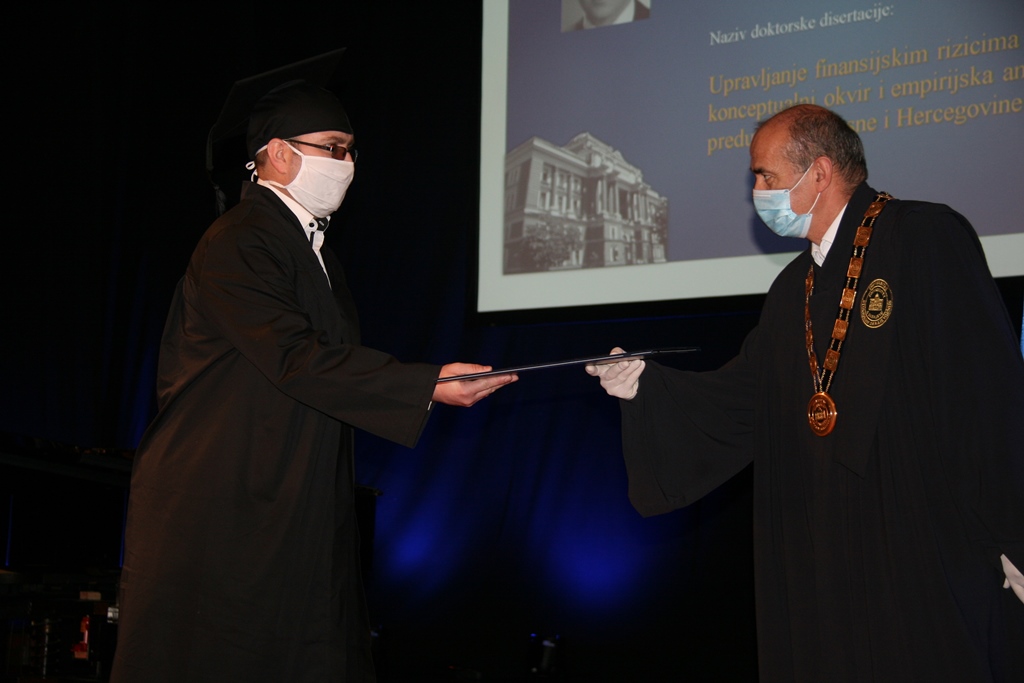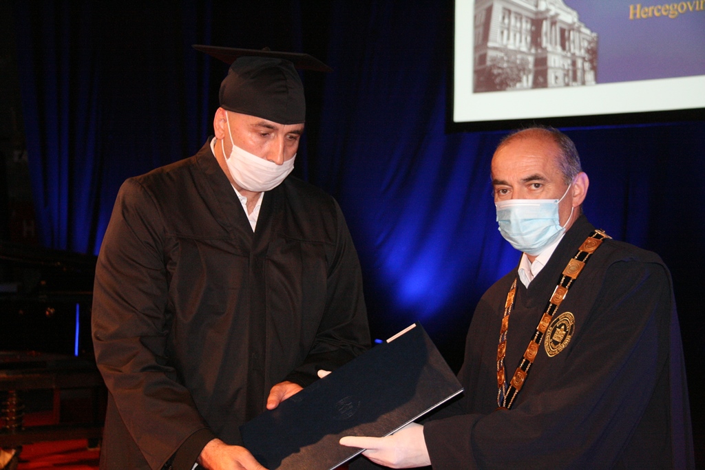 “Today we are promoting 38 candidates who are not only bearers of scientific thought but represent the most significant potential for the development of our society,” said Rector Škrijelj, emphasizing “Both the world and our immediate environment continue to change at an unprecedented rate, which is development which carries with it exceptional risks, but also significant opportunities. The experience of life in the present moment, for who knows how many times, emphasizes that the competencies of people, their knowledge and skills, are more important than their origin, ethnic, religious, racial, sexual and social affiliation. Our doctors of science are the foundation of our country's competitiveness and have a special role in the process of designing our future. In the time ahead, this is one of the fundamental knowledge of life that we will spread together, since our society has yet to make an effort to create truly favorable conditions for the development of science and scientific research.“
