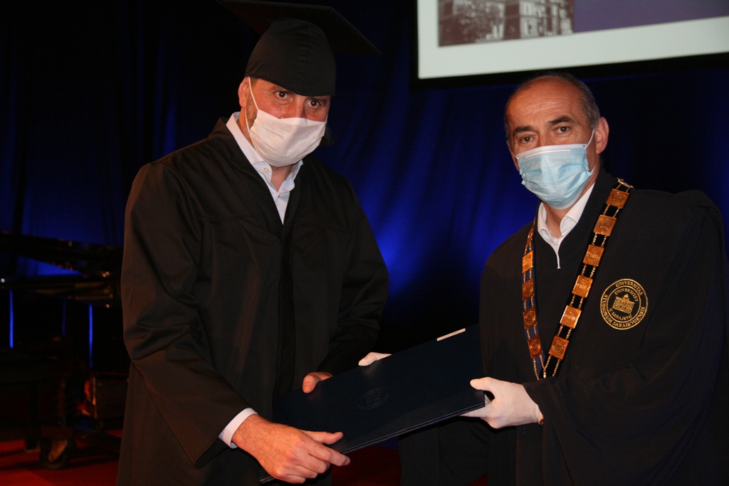 Prof. Dr. Rifat Škrijelj, University of Sarajevo Rector, University of Sarajevo Vice-Rectors and Deans promoted 38 PhD candidates in doctors of science in the technical, humanities, social, medical, natural-mathematical and biotechnical sciences fields.