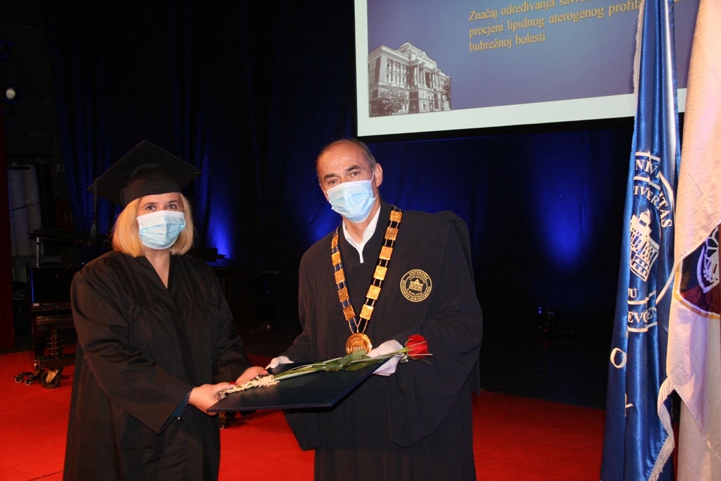 “We are proud, because we managed to reach the stage of the process reserved for those who do not give up! The solemn act of promotion is recognition of many years of hard, dedicated and responsible work, sacrifice and perseverance in the personal mission to contribute to the deepening, expansion, reliability and applicability of scientific knowledge. We are proud, because we - to a significant extent - succeeded in spite of, not thanks to the circumstances! Although the value system of society devalues learning and learning, striving for continuous education and training has remained our life commitment,” said Dr. Aida Kreho.