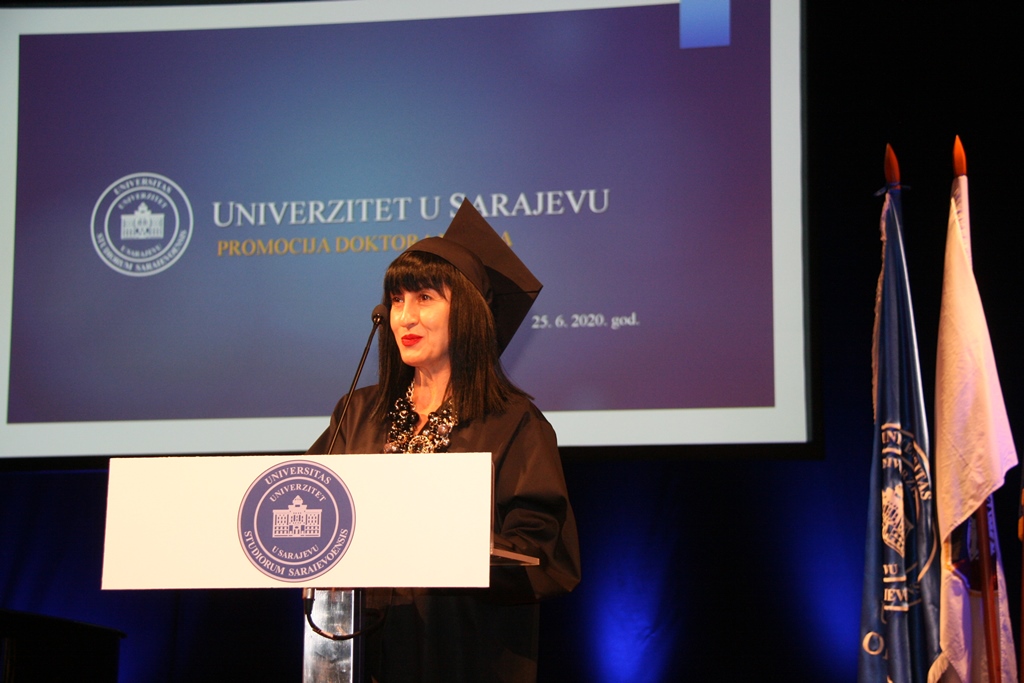 On behalf of the promoted doctors of science at the University of Sarajevo, Amela Kreho, Doctor of Political Sciences, addressed, emphasizing that the generation of doctoral students promoted today to the part of doctors of science at the University of Sarajevo is proof of success and a guarantor of success!
