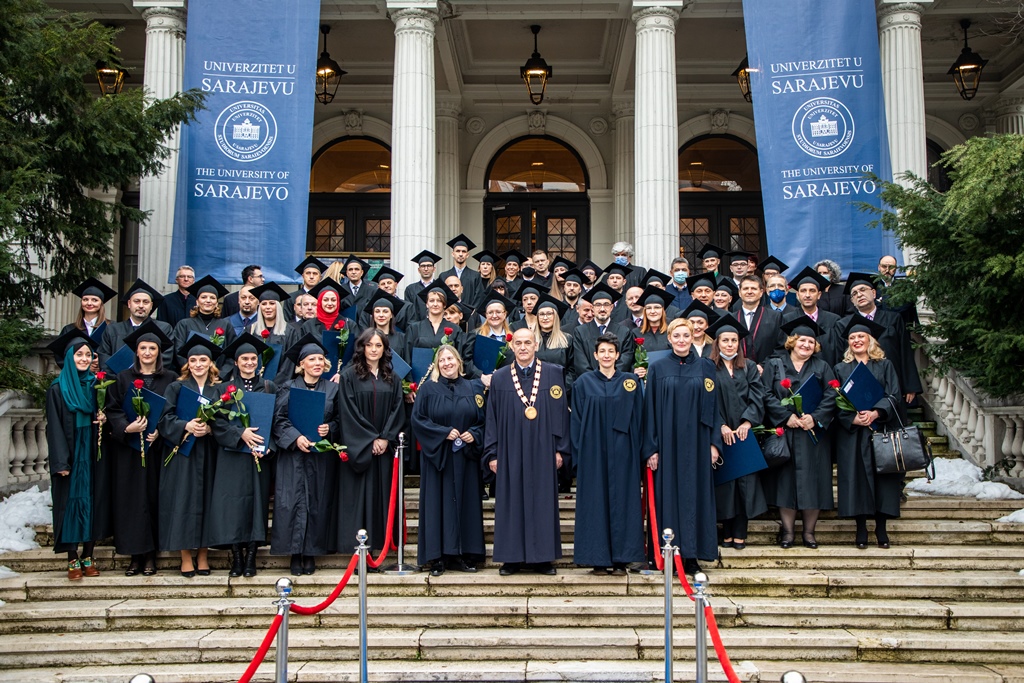 Aiming towards the knowledge society, the University of Sarajevo promoted: 9 candidates for the doctorate of technical sciences, 5 candidates for the doctorate of medical sciences, 4 candidates for the doctorate of law, 3 candidates for the doctorate of linguistics, 2 candidates for the doctorate of political science , administrative, literary-historical and chemical sciences, and 1 candidate each for the degree of Doctor of Social Work, Doctor of Science in Sports and Physical Education, and Doctor of Economics, Security, Islamic, Social, Health, Pharmaceutical, Educational, Agricultural, Food Technology, Biological and Veterinary sciences.