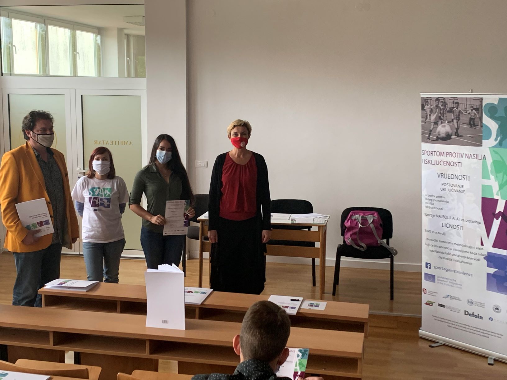 At the final Multiplier SAVE event, participants had the opportunity to listen to lectures by renowned University of Sarajevo professors and SAVE project team members, and the appropriate certificates awarding was organized, as a part of the completed SAVE education. Also, all students received the Handbook “Sports against violence and exclusion – SAVE” in order to make the SAVE project self-sustainable.