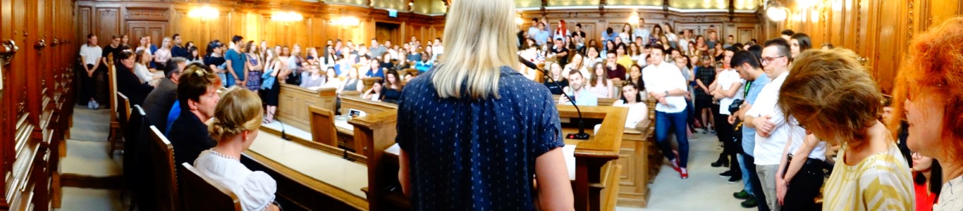 Each semester, the Mayor of Graz, invites all international students who are in exchange in Graz for a welcome reception on behalf of the city. The University of Graz organizes this event and makes a formal agenda covering the participation of all higher education institutions in Graz and their exchange students. Every semester, on reception, one of the institutions together with two selected exchange students has the honor of addressing the Mayor, other exchange students and other attendees.