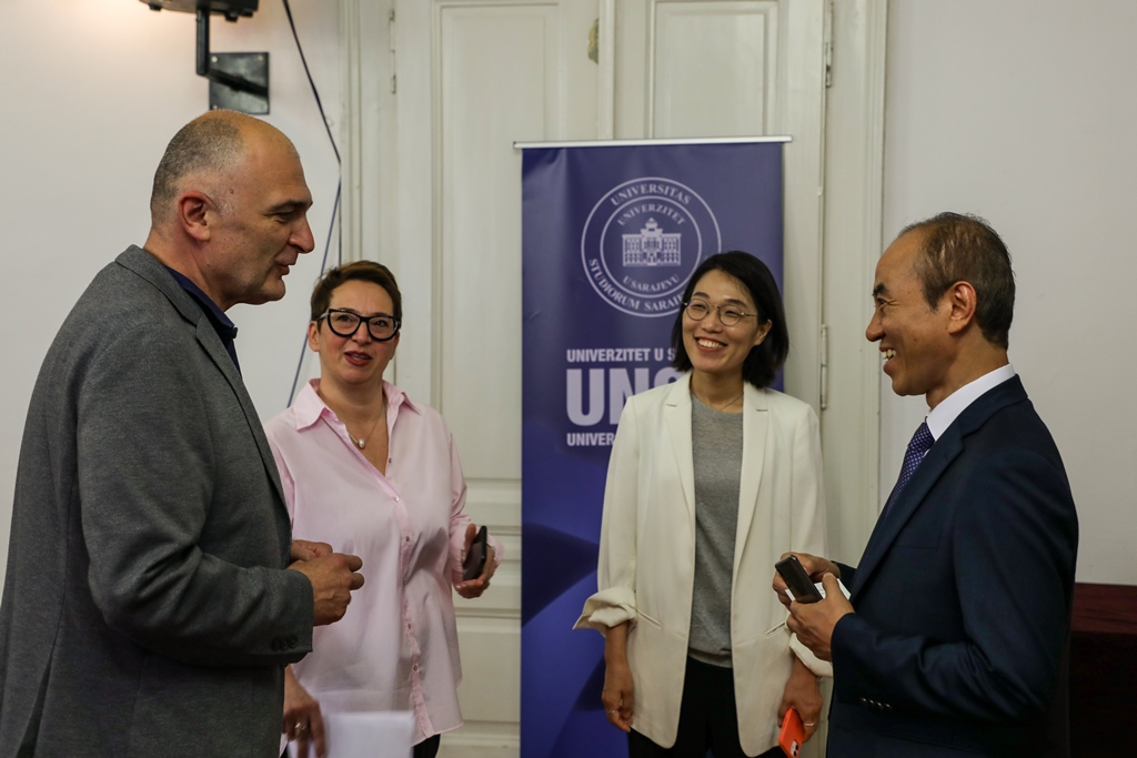 Representatives of the Embassy of the Republic of Korea also met with the Rector of the University of Sarajevo, Prof. Dr. Rifat Škrijelj, Vice-Rector for International Cooperation Prof. Dr. Enita Nakaš and Vice-Rector for Art, Artistic Research, Culture and Sports, Prof. Dr. Tamara Karača Beljak. During the meeting, they discussed the possibilities of cooperation between the University of Sarajevo and the University of the Republic of Korea, especially in the field of culture, arts and sports, as well as cooperation within scientific research / artistic research work.