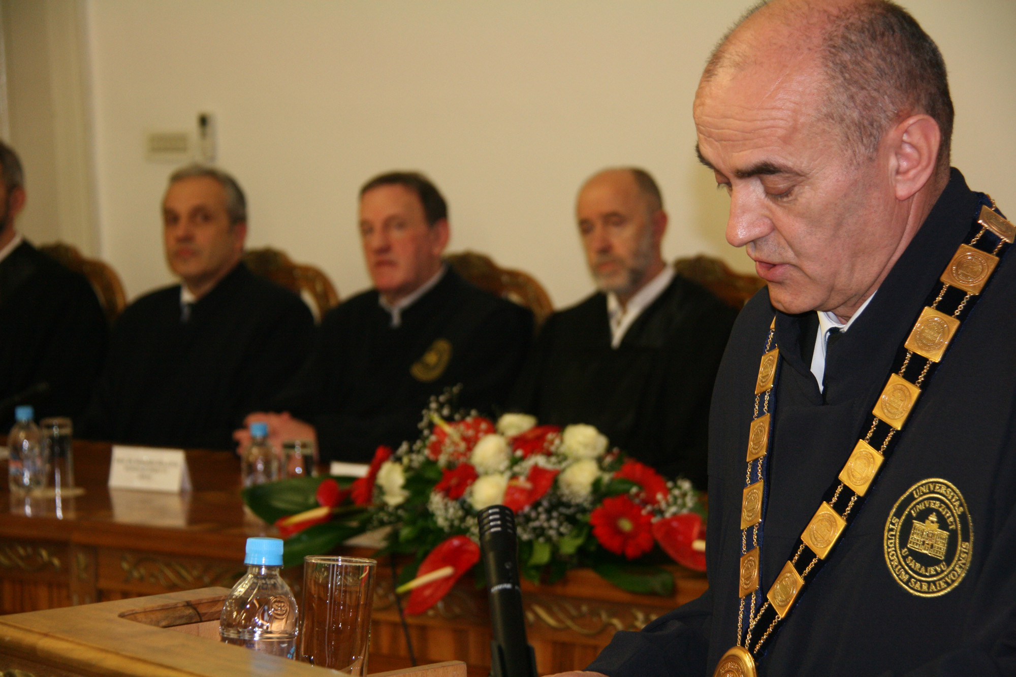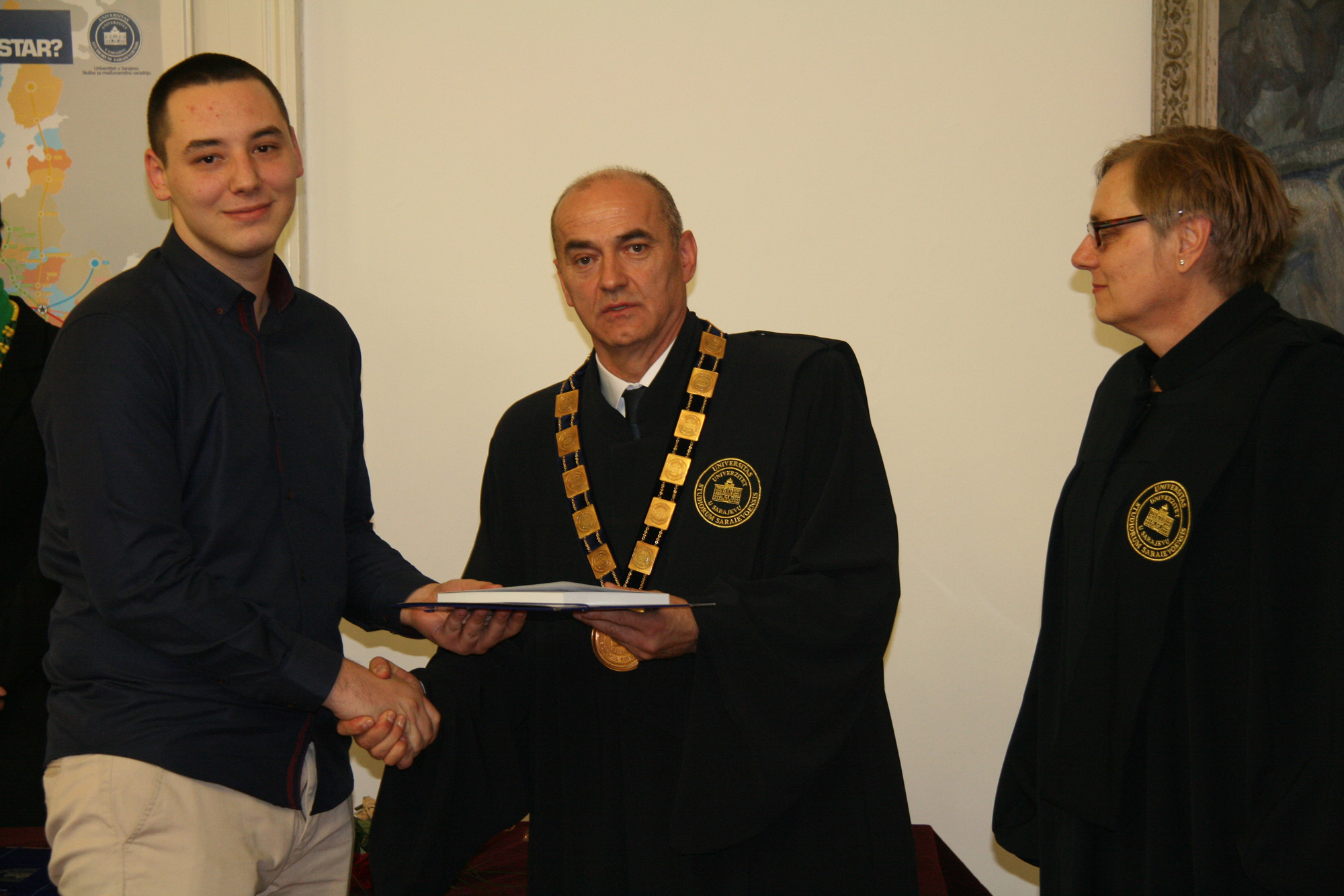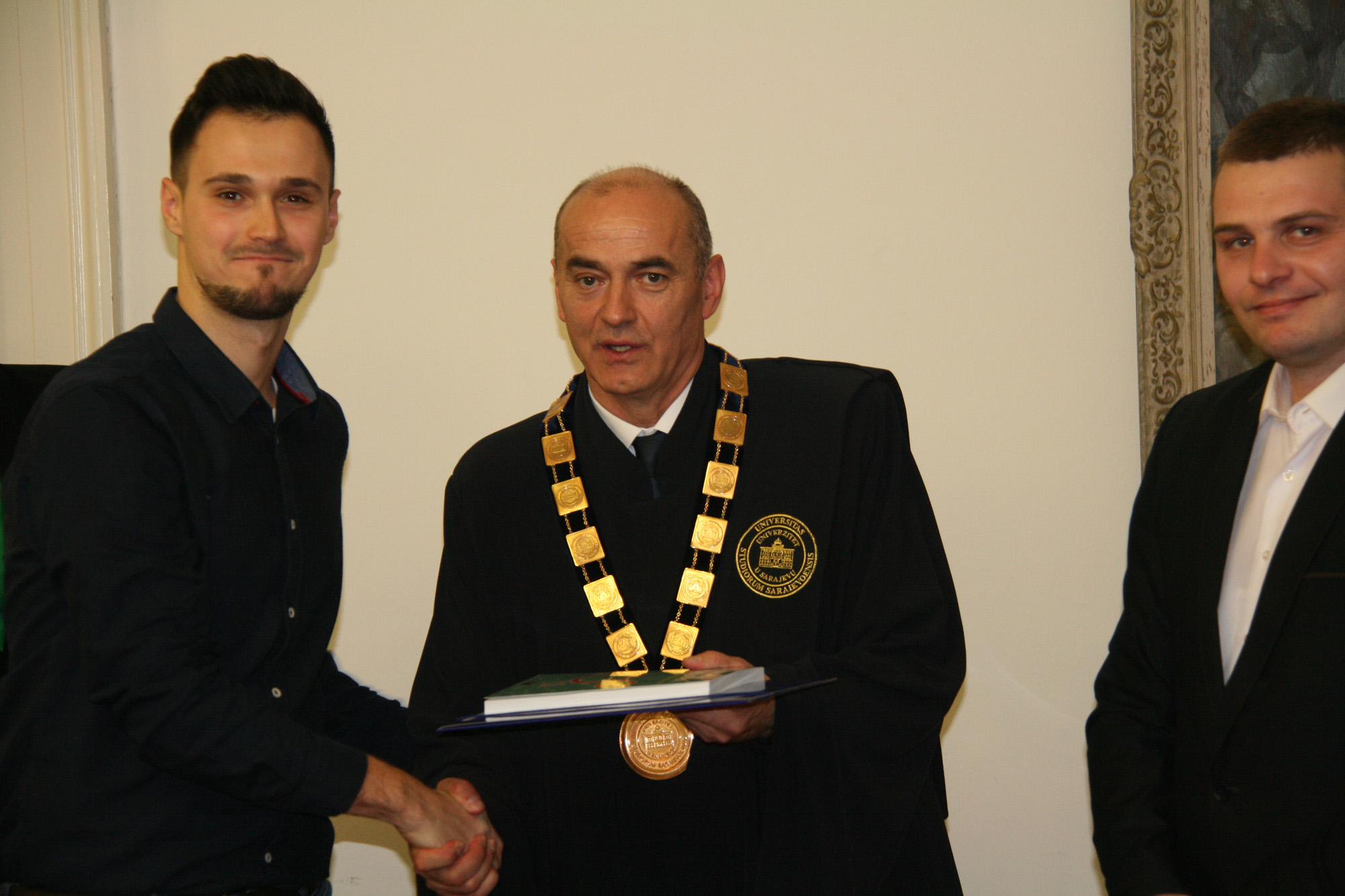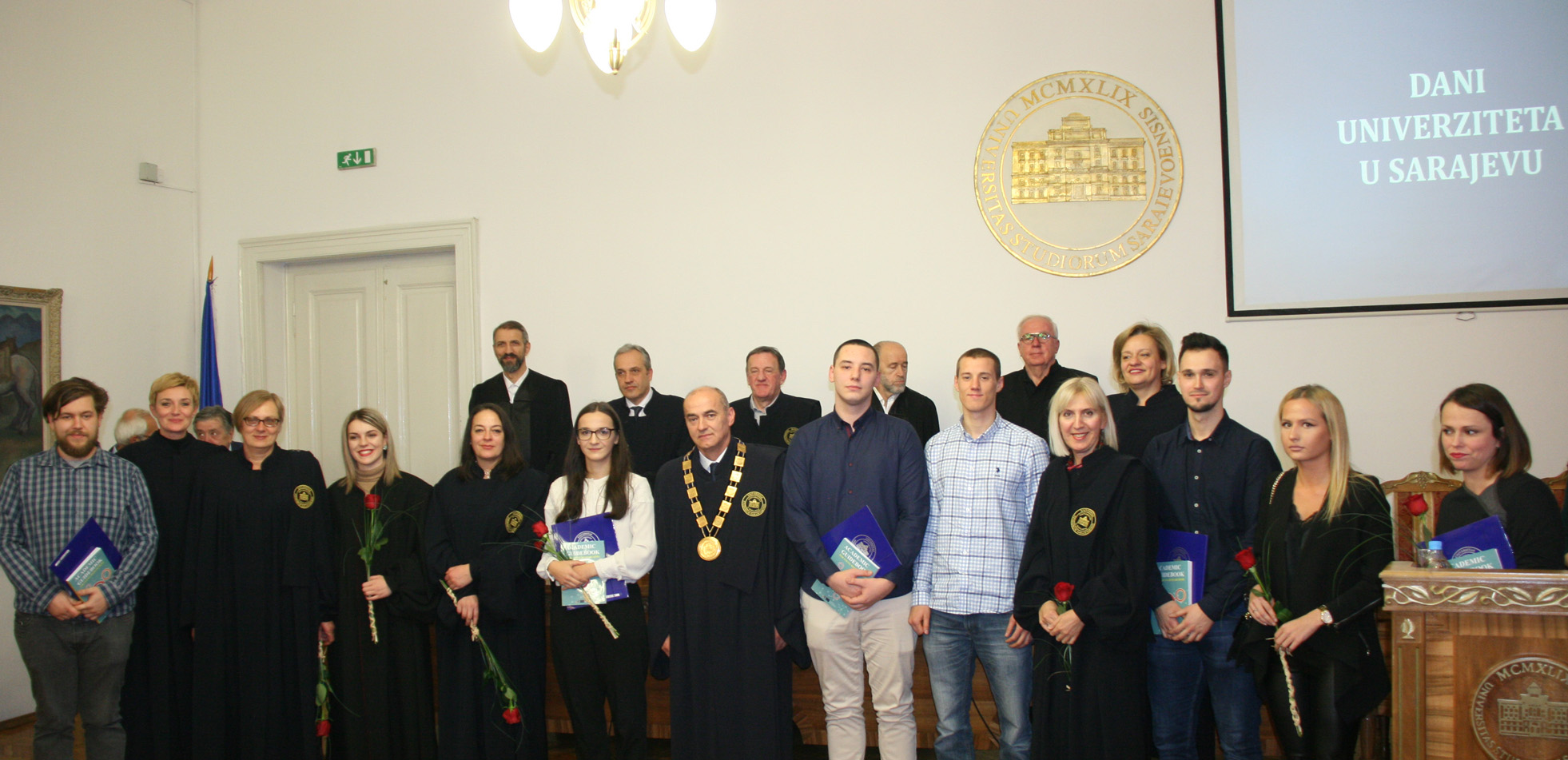 The ceremony marking the 69th anniversary of the University of Sarajevo was extolled by the presence of following important personalities: academician Prof. Dr. Miloš Trifković, BH Academy of Sciences and Arts chairman, Prof. Dr. Zoran Tomić, BH Rectors’ Conference chairman and Rector of the University of Mostar, Prof. Dr. Nermina Hadžigrahić, University of Tuzla Rector, Prof. Dr. Elvir Zlomušica, "Džemal Bijedić" University of Mostar Rector, Dr. Sci. Murat Ramadanović, University Steering Committee President, University Steering Committee members, academcians, Senators, the best University of Sarajevo students in 2018 – University of Sarajevo Golden Badge recipients: Abdulah Jašarević, Demir Papić and Harun Iserović, and numerous professors and students.
