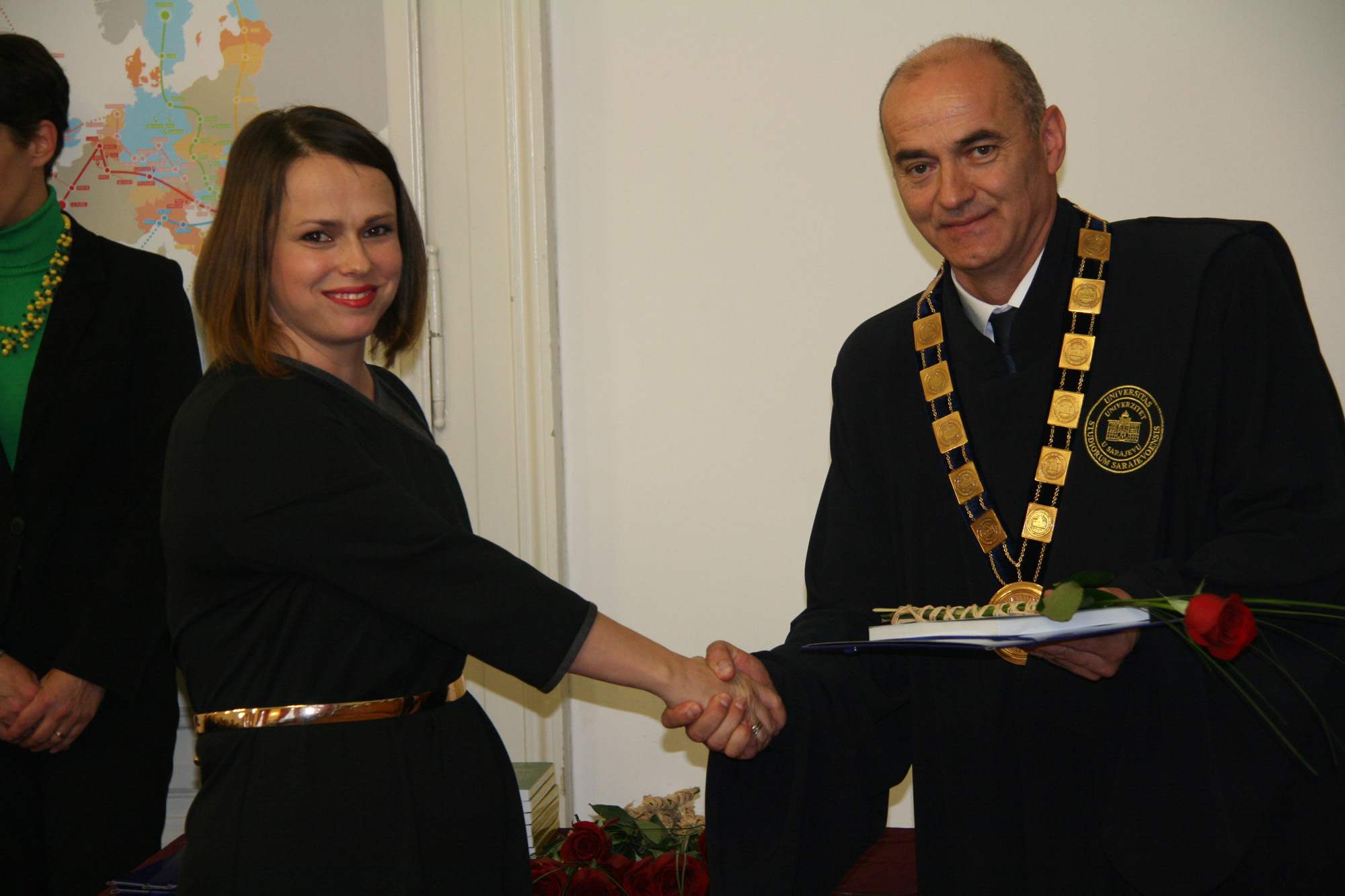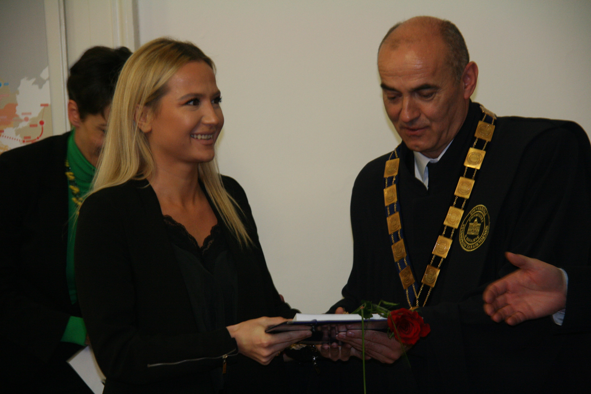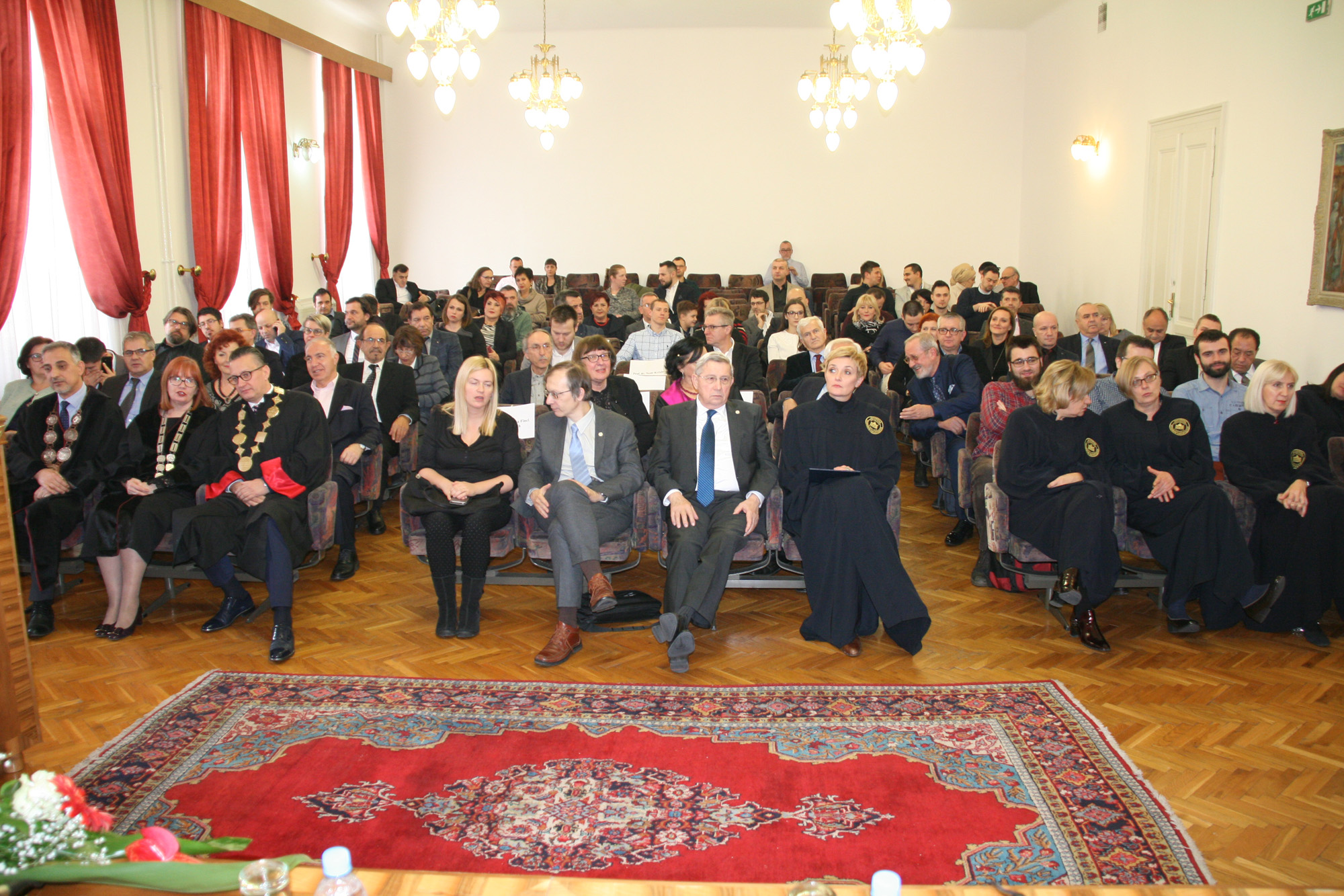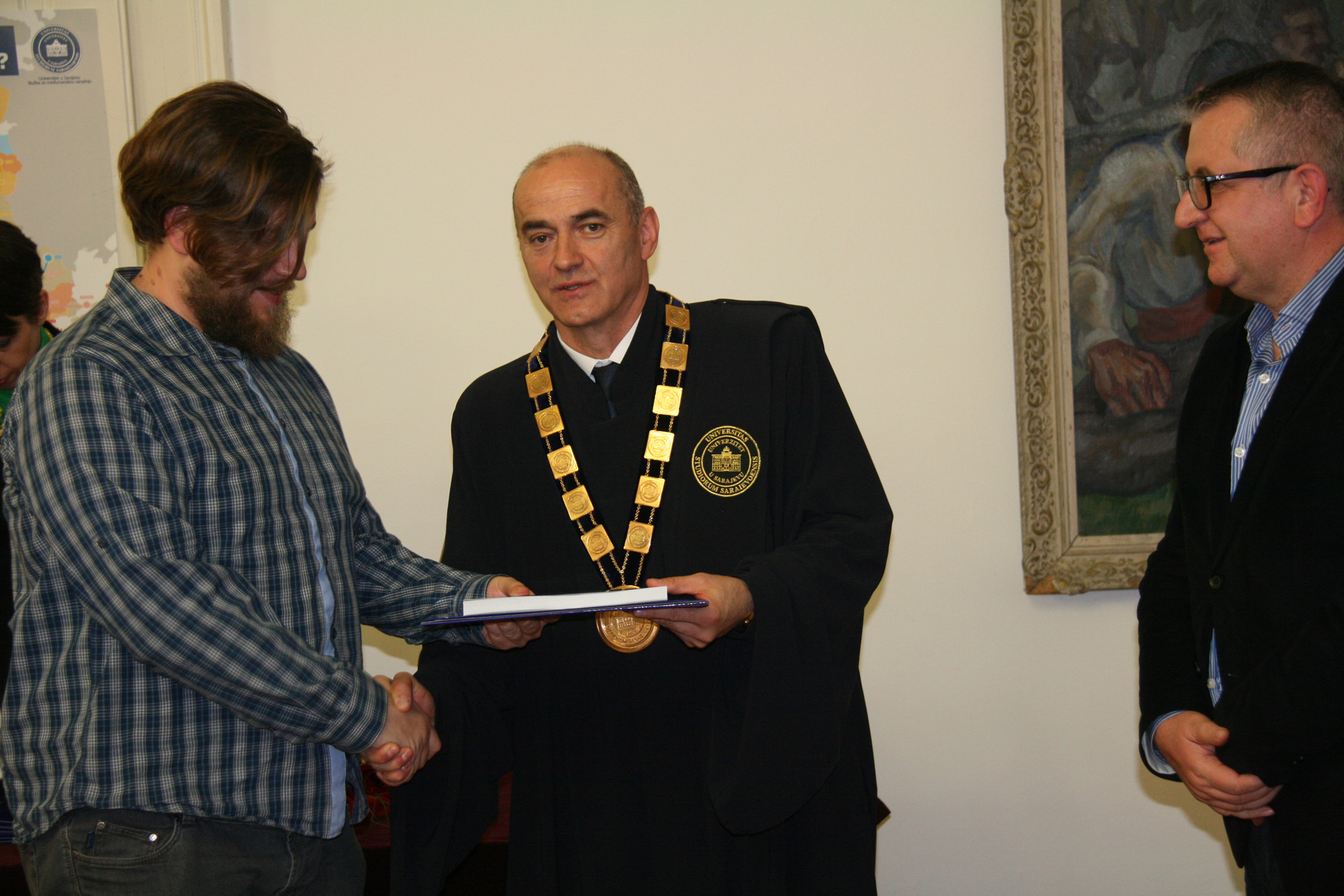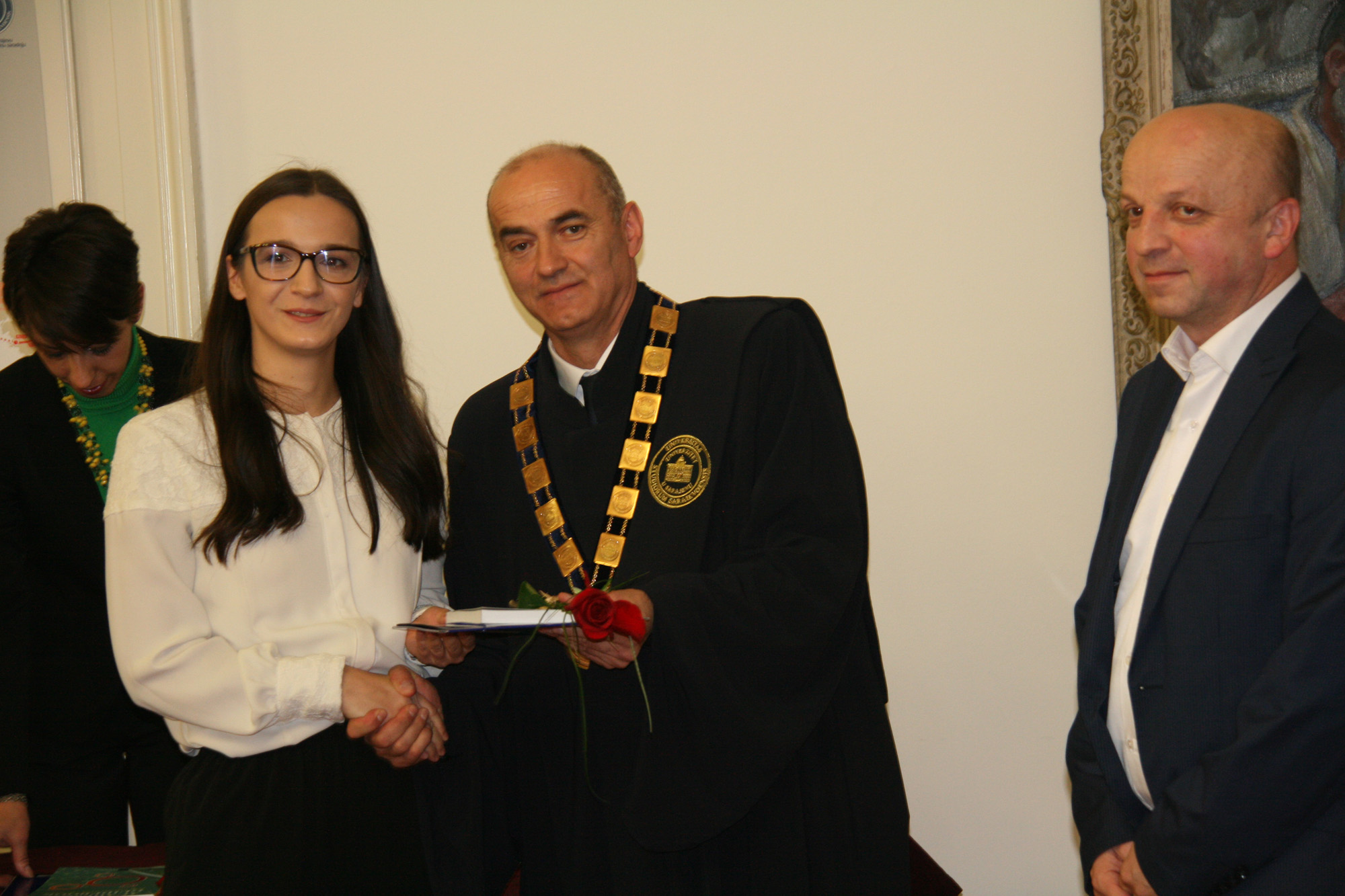 The ceremony marking the 69th anniversary of the University of Sarajevo was extolled by the presence of following important personalities: academician Prof. Dr. Miloš Trifković, BH Academy of Sciences and Arts chairman, Prof. Dr. Zoran Tomić, BH Rectors’ Conference chairman and Rector of the University of Mostar, Prof. Dr. Nermina Hadžigrahić, University of Tuzla Rector, Prof. Dr. Elvir Zlomušica, "Džemal Bijedić" University of Mostar Rector, Dr. Sci. Murat Ramadanović, University Steering Committee President, University Steering Committee members, academcians, Senators, the best University of Sarajevo students in 2018 – University of Sarajevo Golden Badge recipients: Abdulah Jašarević, Demir Papić and Harun Iserović, and numerous professors and students.