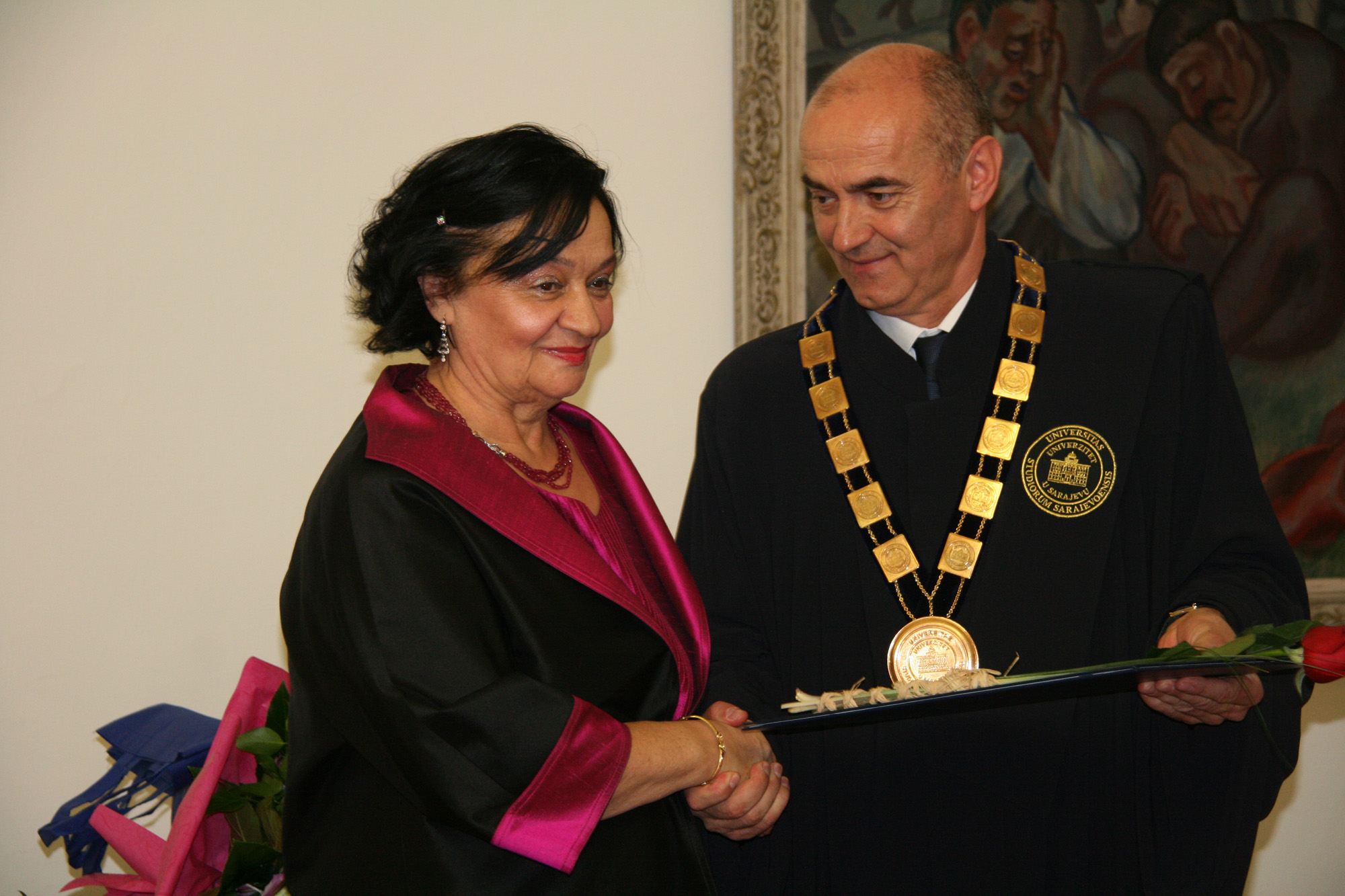 The ceremonial Senate session and the promotion of professors emeritus is one in a series of events organized on the occasion of marking the 69th University of Sarajevo’s Anniversary. The other Anniversary marking events were: the promotion and diplomas awarding to 5246 graduates, an exhibition of students artwork by the Art Academy of the University of Split at the Academy of Fine Arts of the University of Sarajevo, the concert by the UNSA Music Academy Orchestra, the promotion of 54 Doctors of Sciences, and the staging of the play Electra by Aeschylus performed at the Academy of Performing Arts, and numerous ceremonies and scientific meetings organized by the University of Sarajevo‘s subunits.