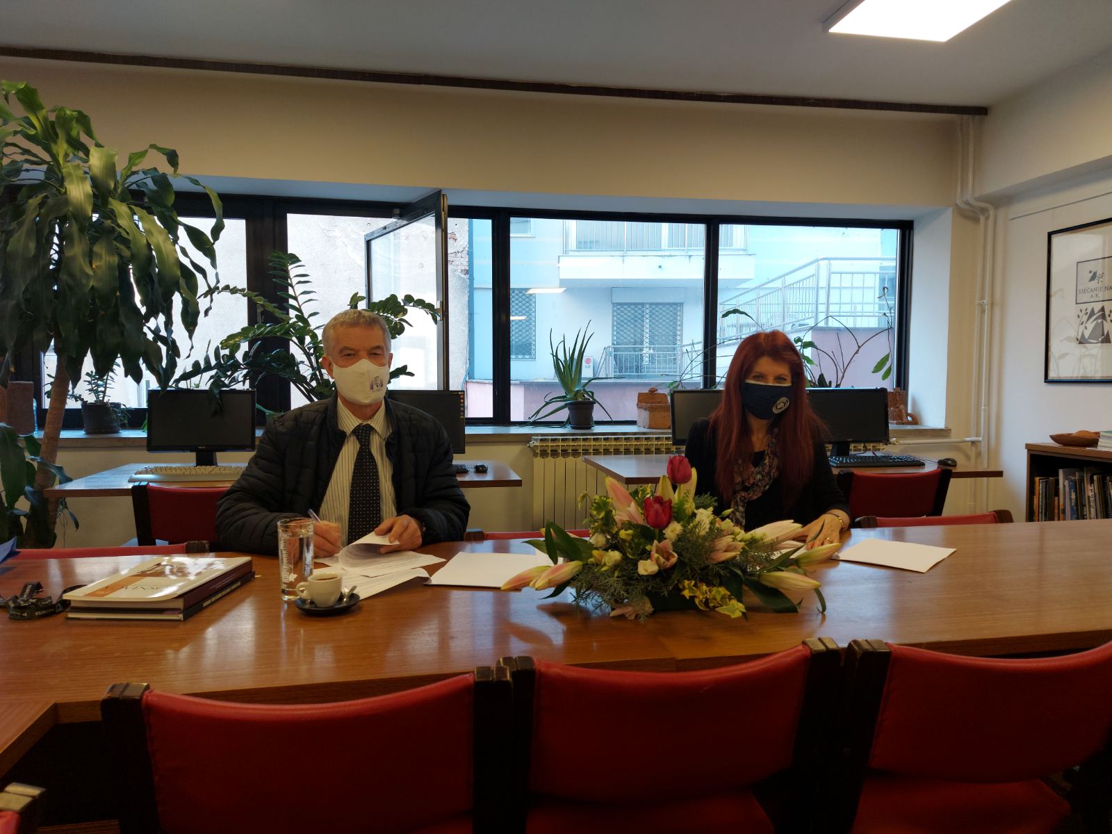 The virtual library of Bosnia and Herzegovina has become richer for another important member- the Library of the Academy of Fine Arts, a University of Sarajevo member, the basic BH higher education institution in this field, founded in 1972. The ceremonial act of joining this library in COBISS.BH (www.cobiss.ba) was held in the premises of the Academy, and the signatories were Prof. Dr. Dubravka Pozderac - Lejlić, dean of the Academy, Dr. Ismet Ovčina, director of the National and University Library of BiH.