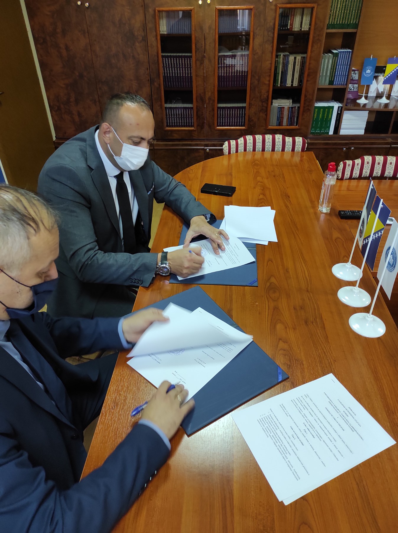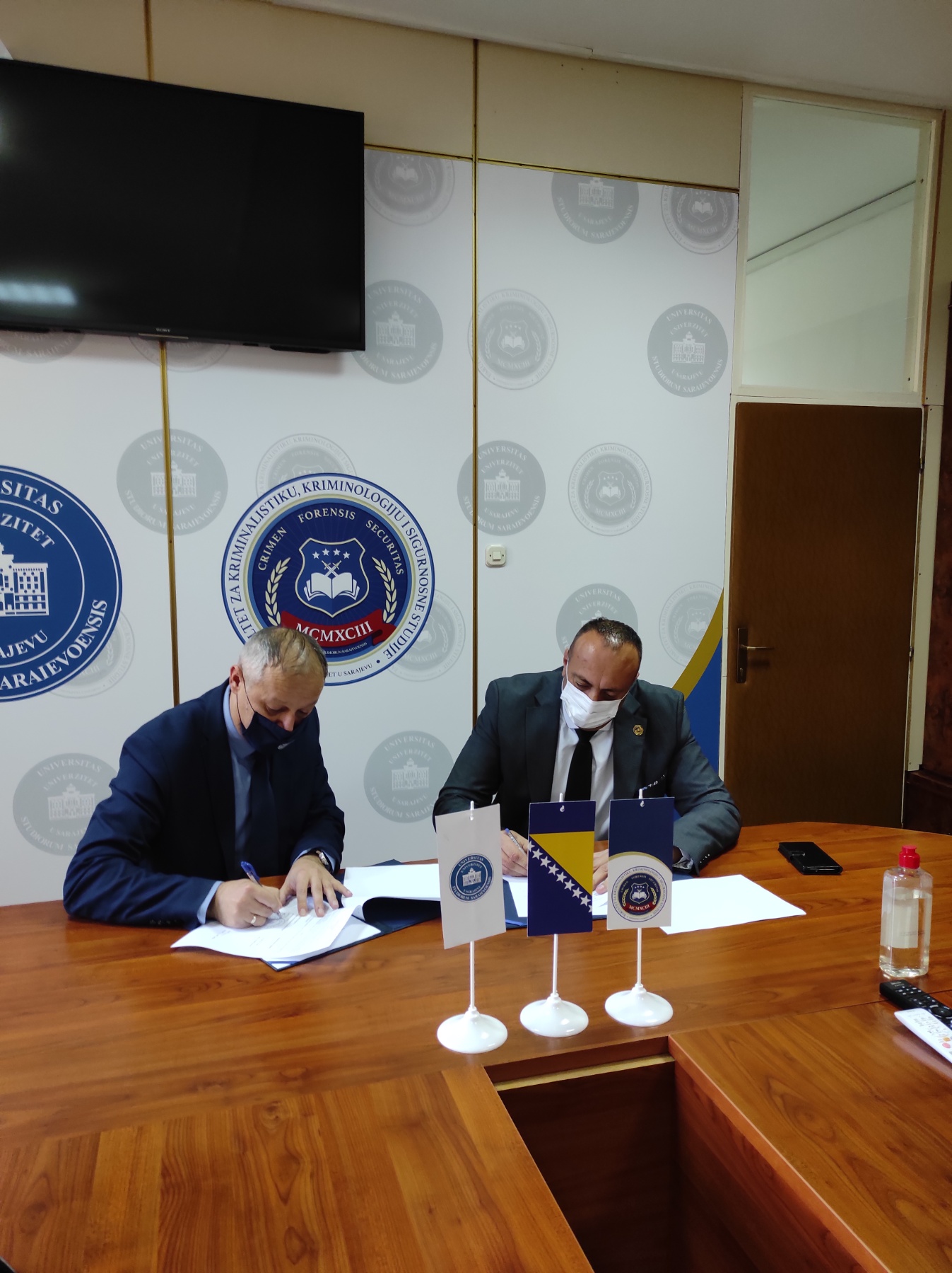 On 28/10/2021, the signing of the Agreement on Cooperation of Special Importance between the Federal Police Administration and the Faculty of Criminalistics, Criminology and Security Studies of the University of Sarajevo was held in Sarajevo. The agreement was signed by the Deputy Director of the Federal Police Administration, Mr. Ensad Korman, and the Faculty of Criminalistics, Criminology and Security Studies Dean, Prof. Dr. Jasmin Ahić.
