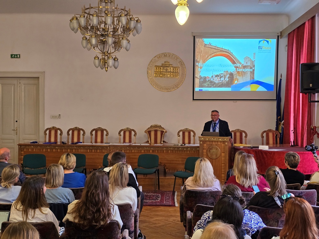 An information session on EUPeace – the European University Alliance for Peace, Justice, and Inclusive Societie – was held on 9 June 2025 in the Grand Hall of the University of Sarajevo Rectorate.