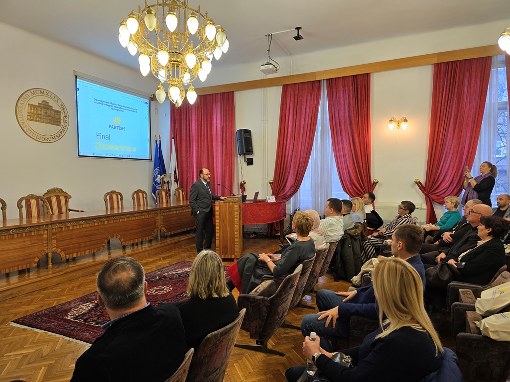 The two-day final conference of the ERASMUS+ Project “Development of Short Cycles and Part-time Studies in Higher Education in Bosnia and Herzegovina” (PARTISH) began today at the Rectorate of the University of Sarajevo. The aim of the project was to improve the flexibility and inclusiveness of higher education through the development of programs that enable retraining and additional training, and adaptation to the needs of the labor market.