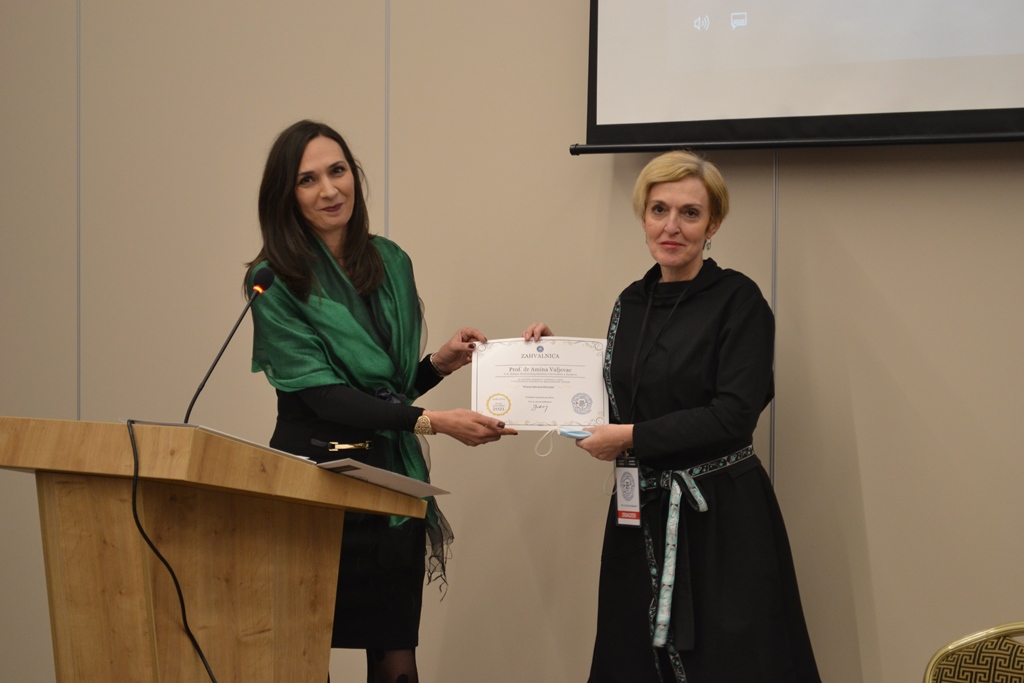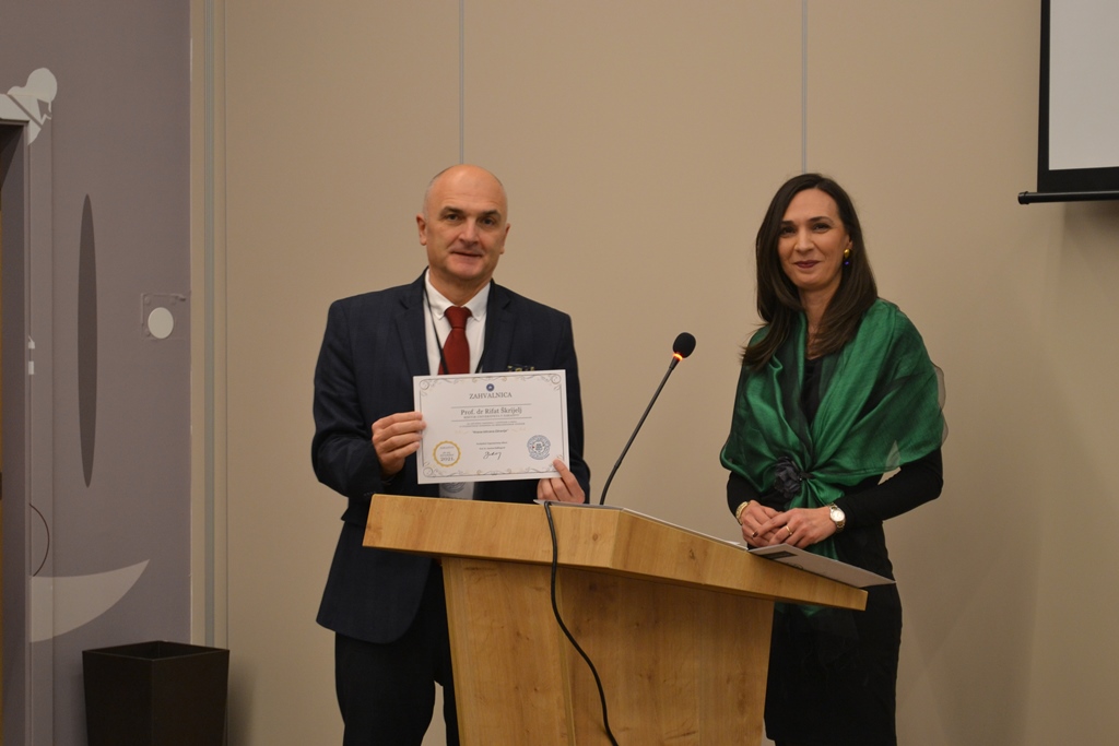 Prof. Dr. Jasmina Đeđibegović opened the Congress with her address, and on that occasion handed over letters of thanks to the organizational units of the University of Sarajevo that participated in the organization of the Congress: Faculty of Veterinary Medicine, Faculty of Pharmacy, Faculty of Agriculture, Faculty of Medicine, Faculty of Health Studies, Faculty of Dentistry and Pedagogy. On the occasion of the VI Student Congress Food-Nutrition-Health, letters of thanks are awarded to the University of Sarajevo Rector, Prof. Dr. Rifat Škrijelj, the Academy of Music, the Academy of Performing Arts, the Academy of Fine Arts, the University Tele-Informatics Center UTIC, Dr. Džemil Hajrić, Director of the BiH Food Safety Agency, the Federal Ministry of Agriculture, Water Management and Forestry, and sponsors: Bosnalijek, BH Telecom, AbelaPharm, Salveo, BBI banka.