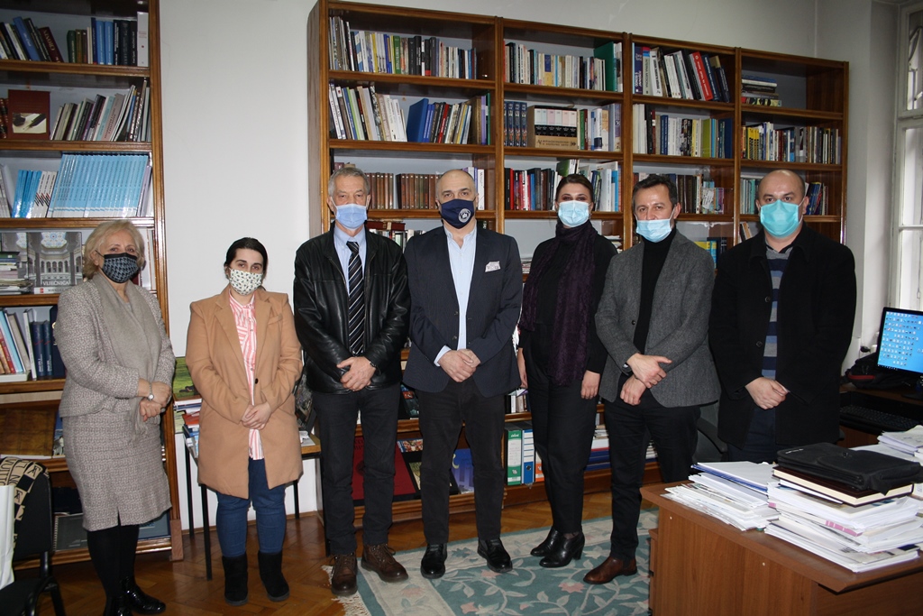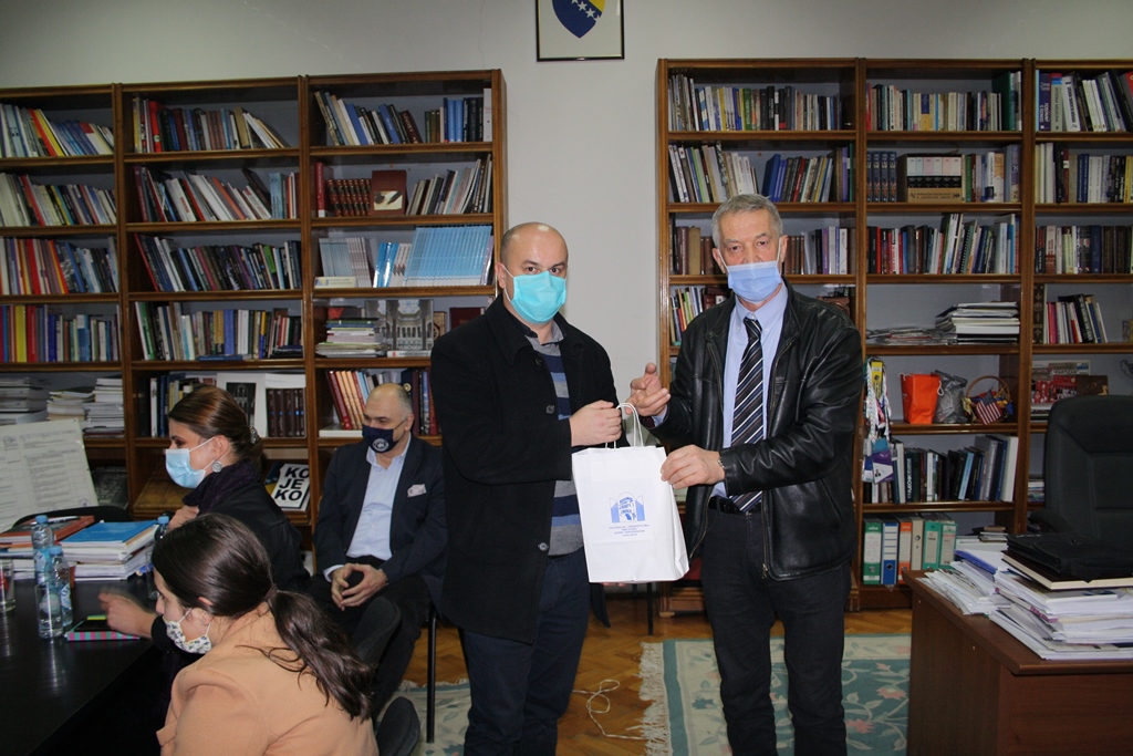 Potočari Memorial Center representatives visited the University of Sarajevo on 26 January 2021. On that occasion, they met with Vice-Rector for Research, Prof. Dr. Mirza Dautbašić and Director of the University of Sarajevo Library, Mr. Sc. Nadina Grebović-Lendo and the Faculty of Philosophy librarian in charge of coordinating the librarians team in the project, Vahid Piralić. During the visit, the continuation of the arranging the operation of the Potočari Memorial Center Library project were discussed. We remind you that last year the University of Sarajevo handed over a donation of 5,000 publications to the Memorial Center in Potočari.