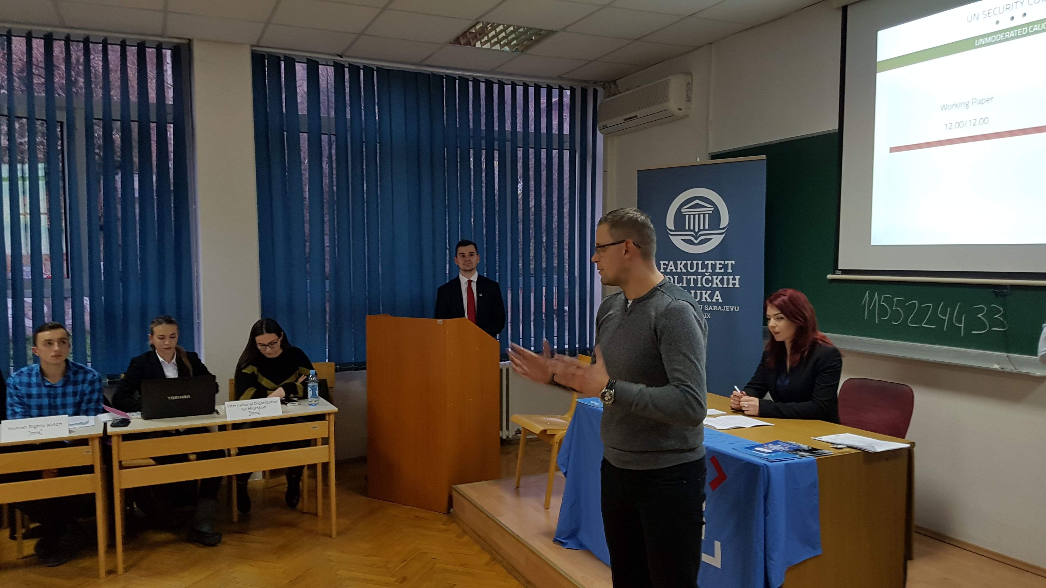 Students were briefly addressed by Vice Dean for Teaching, Prof. Dr. Mirza Smajić, who spoke about his own experiences in the simulations of various international organizations, encouraged colleagues and wished them success.