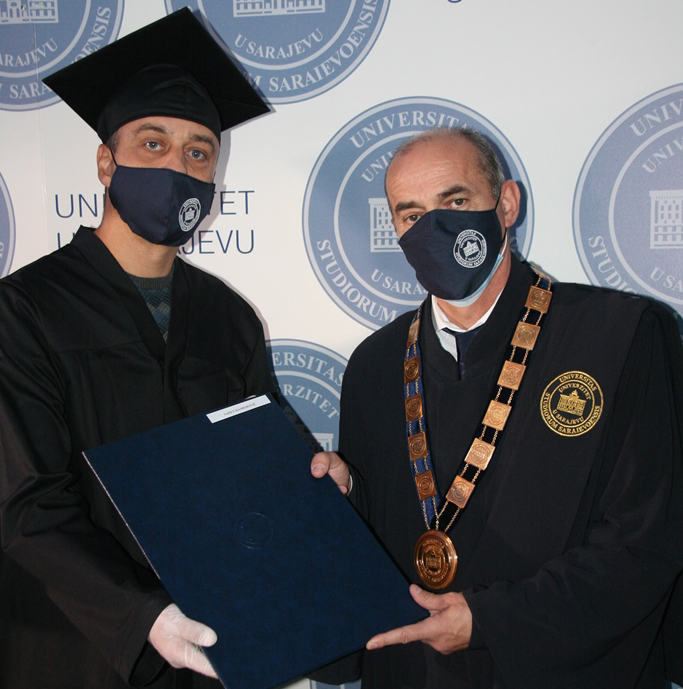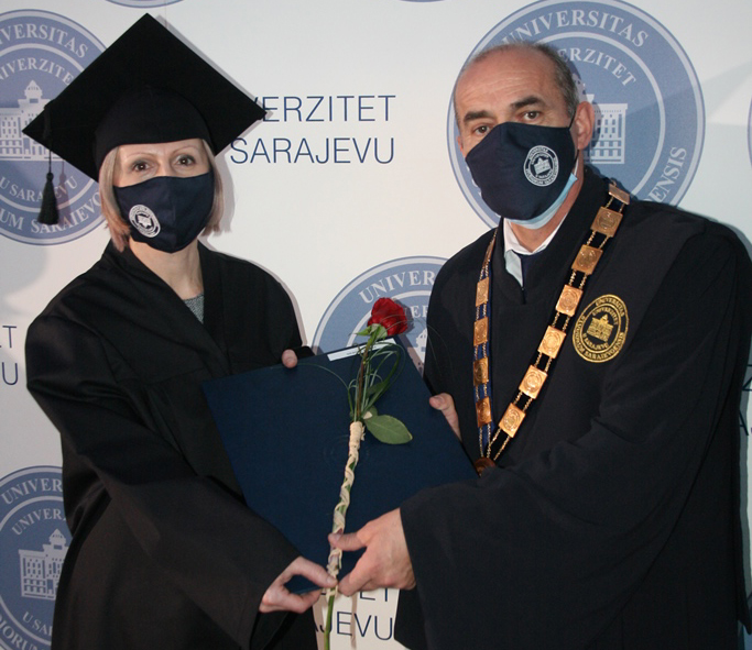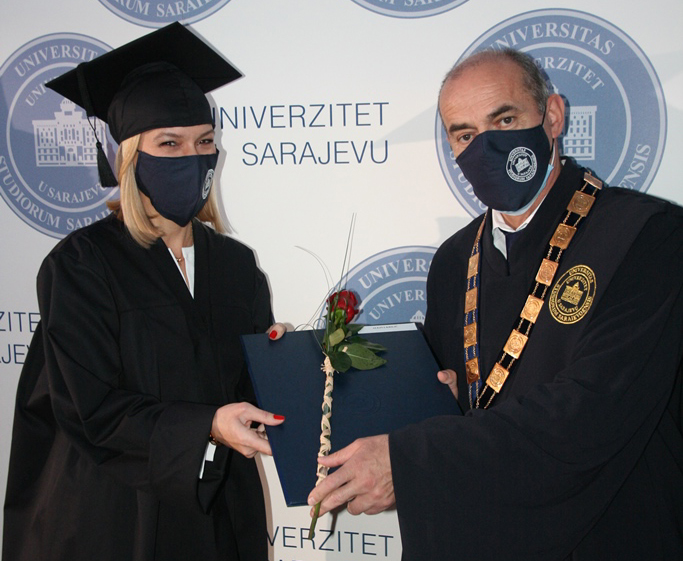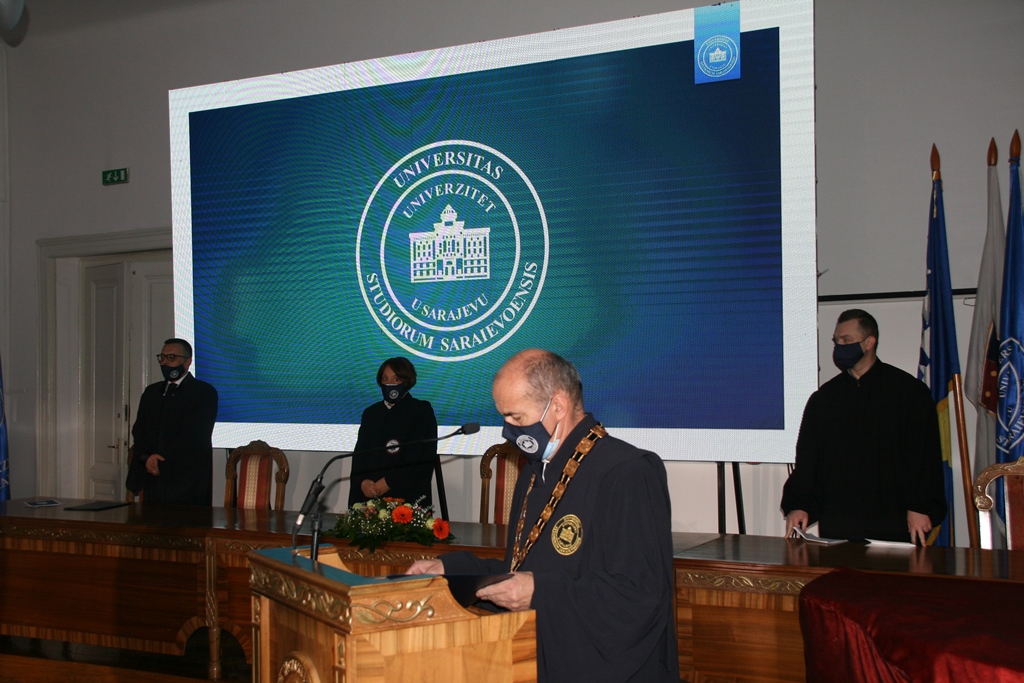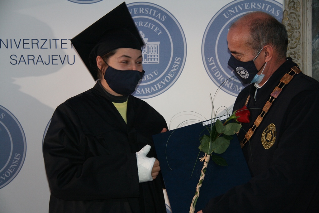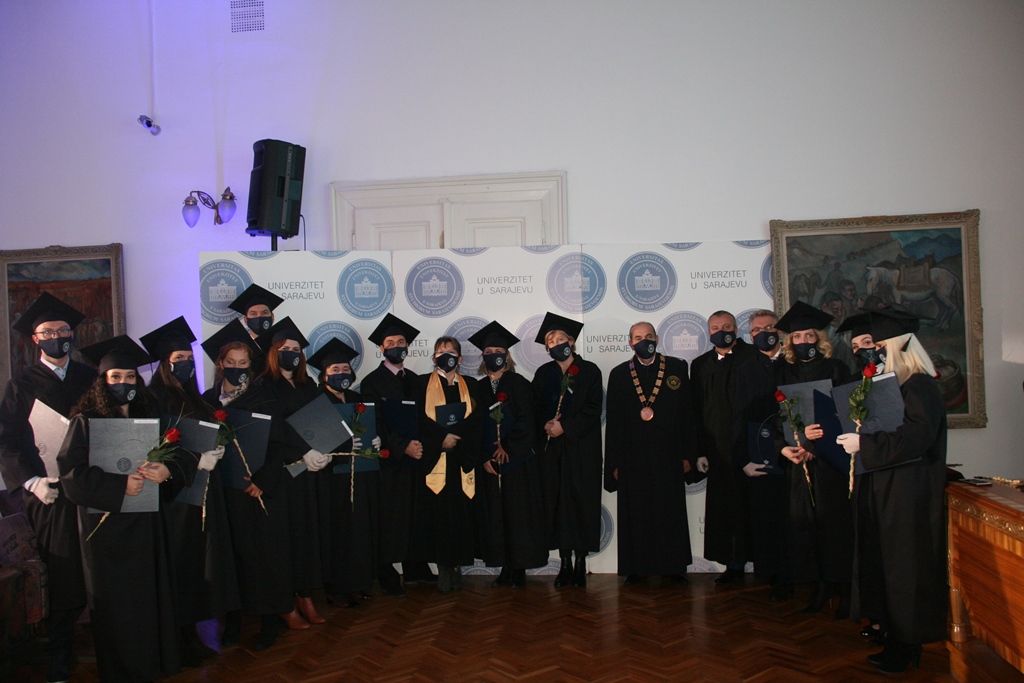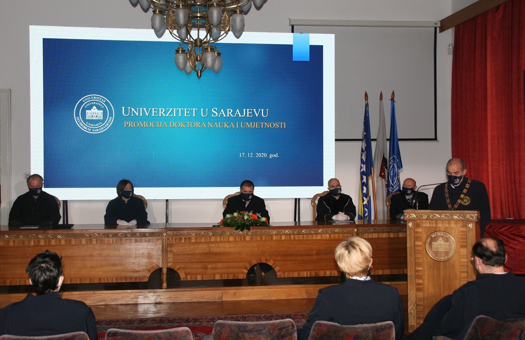 The promotion of University of Sarajevo Doctors of Sciences and Arts was held on 17 December 2020 in the University of Sarajevo Ceremonial Hall (Obala Kulina bana 7/II), in compliance with all applicable epidemiological protection measures.