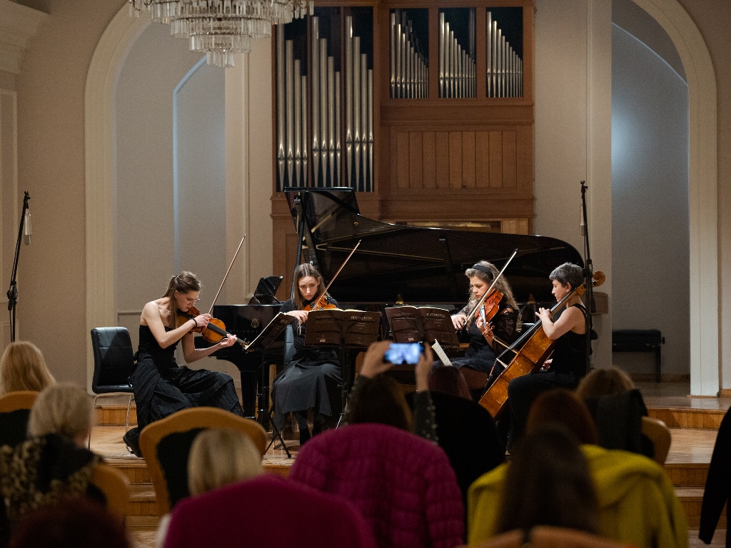 The first movement of Allegro ma non tanto from string quartet op. 18, no. 4 in C minor by Ludwig van Beethoven were played by Tamara Arsovski (violin), Alma Dizdar (violin), Aida Deljkić (viola) and Belma Alić (cello).