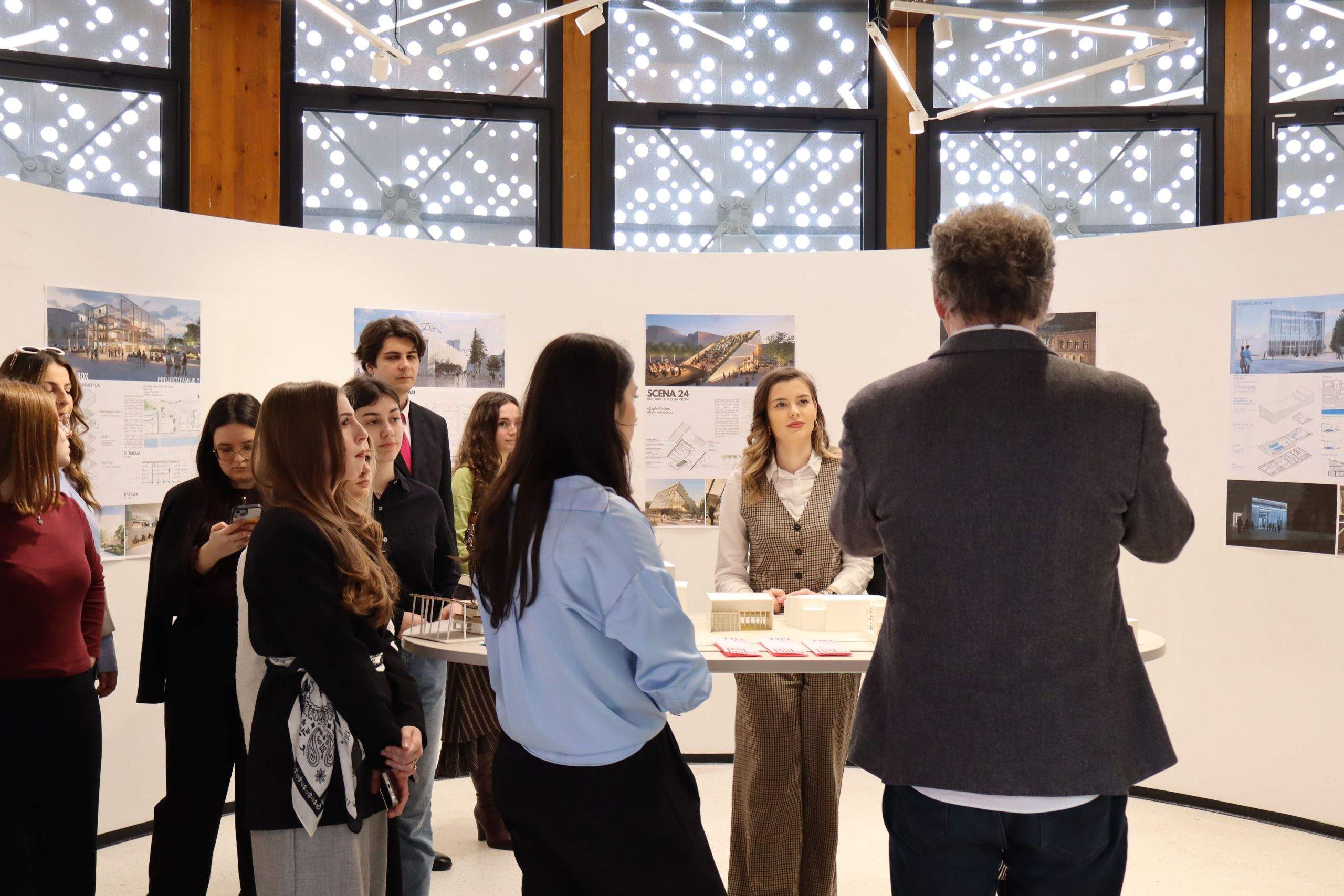 Izložba radova generacije I godine II ciklusa studija u okviru predmeta Projektovanje 7 – Projektovanje zgrada za kulturu, realizirana pod mentorstvom prof. dr. Adnana Pašića, uz podršku docentice Zulejhe Šabić-Zatrić i asistenta Edina Zoletića, održana je u četvrtak 12.02.2026. godine u prostoru Austrijske kuće u Sarajevu. Izložbom su predstavljeni rezultati semestralnog istraživačko-projektnog zadatka usmjerenog na promišljanje festivalskog centra na osjetljivoj i historijski značajnoj gradskoj lokaciji – u neposrednoj blizini Narodnog pozorišta, odnosno na prostoru postojećeg parkinga pored Trga Susan Sonntag.