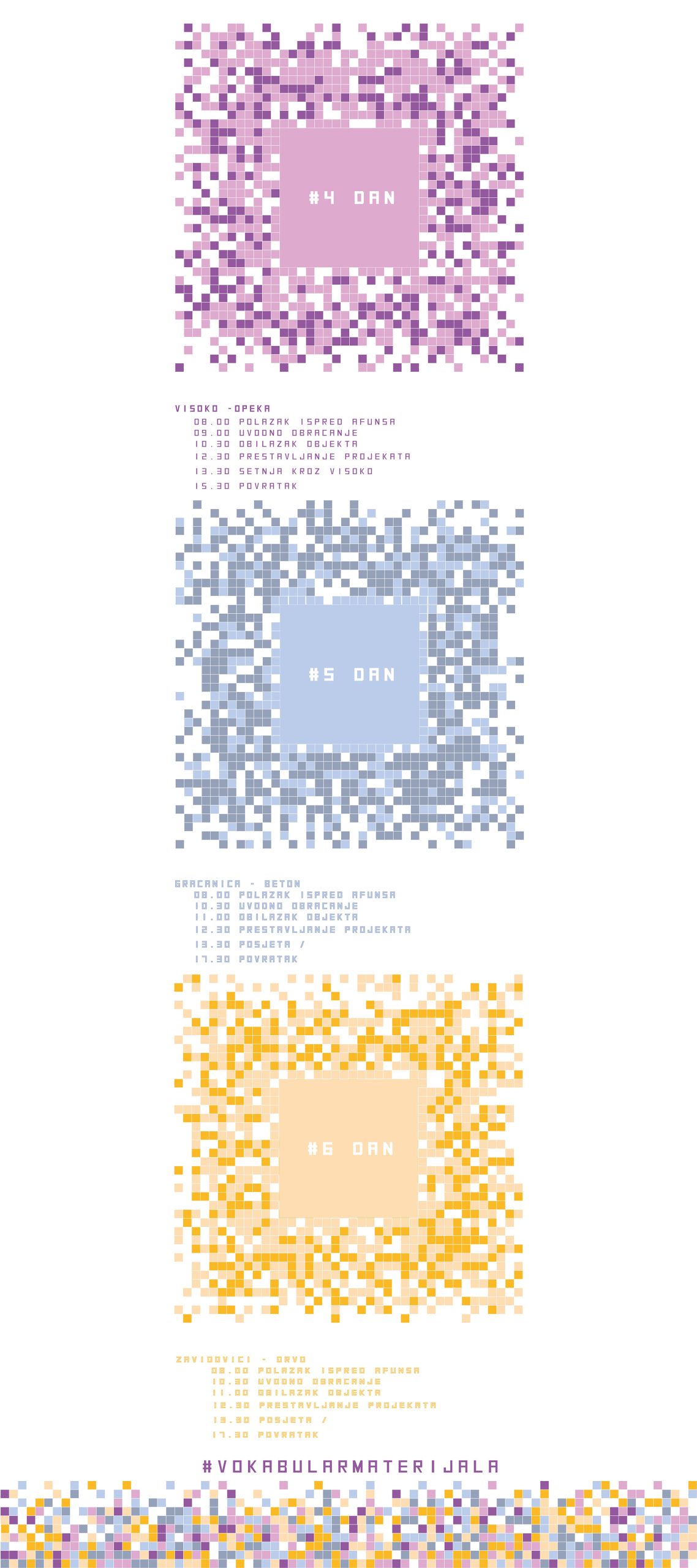 “Rad predstavlja pikselizirani uzorak koji suptilno sugeriše temu događaja, istovremeno privlačeći pažnju svojom dinamičnom slikom. Kao jedini od pristiglih radova, postavlja skriveno višeznačno pitanje, stvarajući nedoumice da li je upućeno studentu ili nekom objektu. Na neizravan način uspostavlja vizuelnu kontinuitet sa prošlogodišnjim događajem.