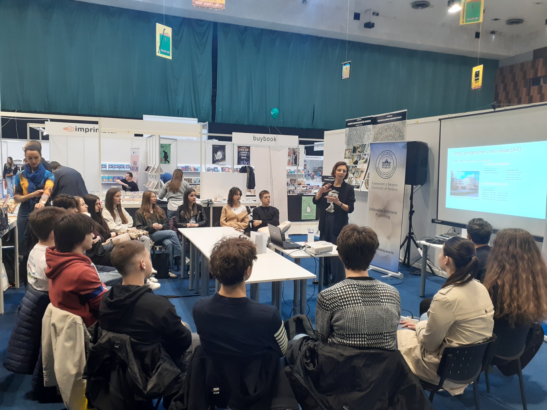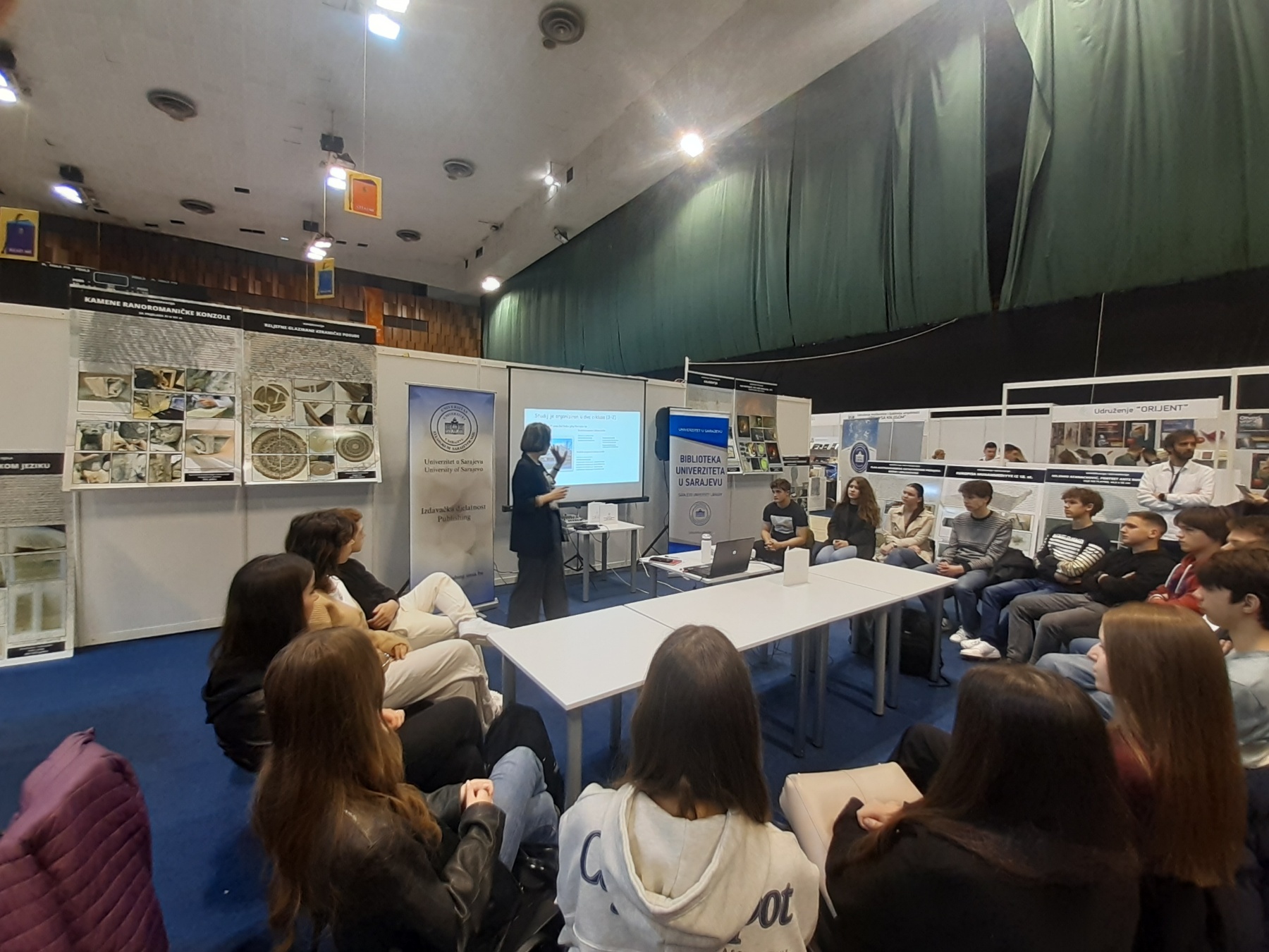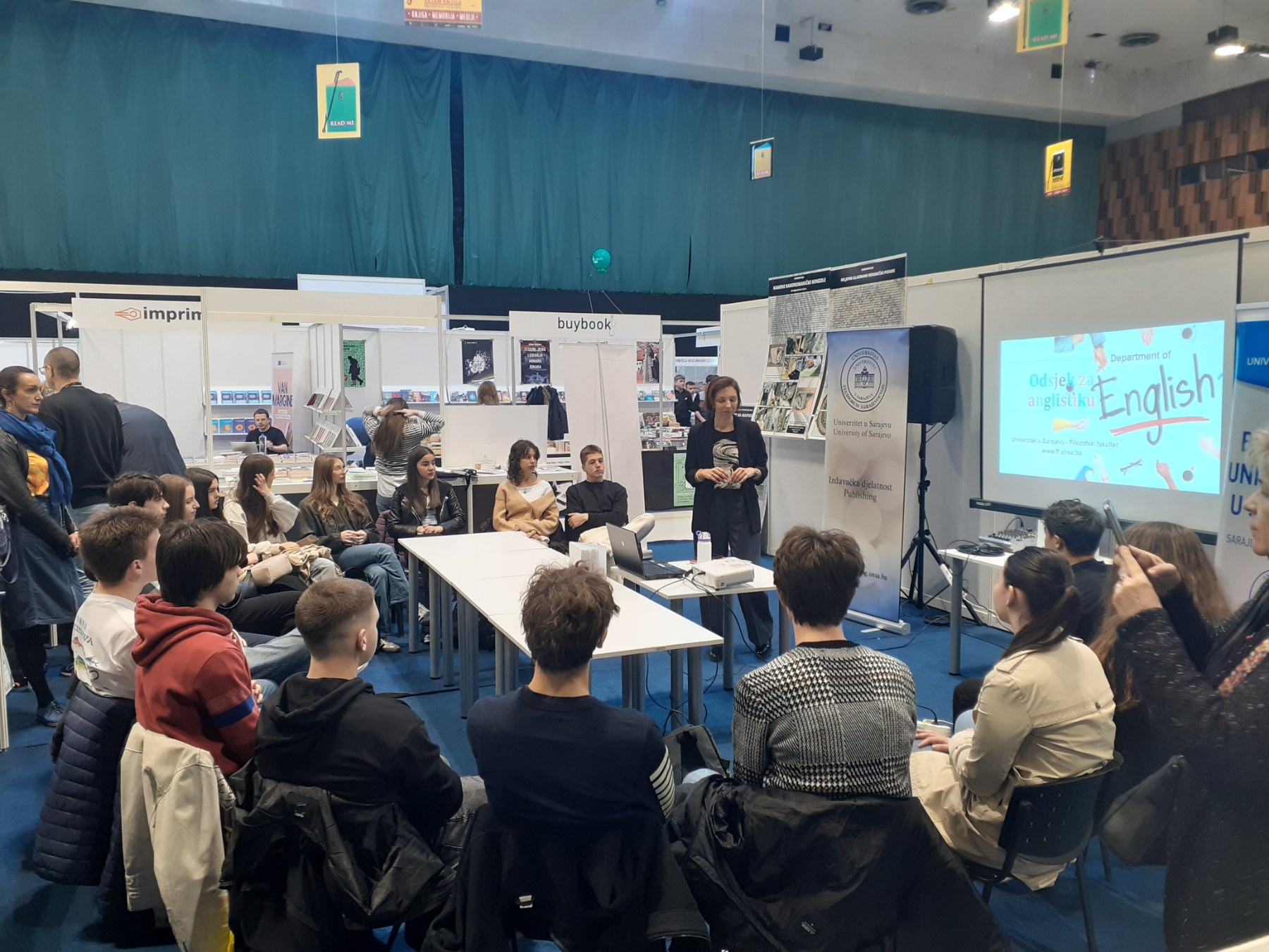 Na Sajmu Univerziteta i univerzitetske knjige, koji se održava u okviru 36. Internacionalnog sarajevskiog sajma knjiga pod motom "Čitaj me", čas iz engleske književnosti za učenike i učenice Treće gimnazije održala je prof. dr. Lejla Mulalić sa Odsjeka za anglistiku Univerziteta u Sarajevu - Filozofskog fakulteta.