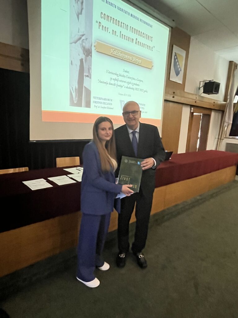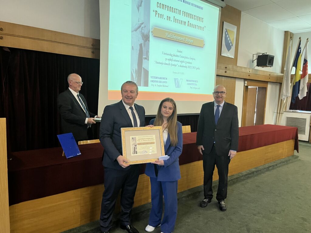Tokom svečane promocije ispred Fondacije „Prof. dr. Ibrahim Arnautović“ i Univerziteta u Sarajevu -Veterinarskog fakulteta dodijeljena je plaketa i stipendija za najbolji ostvareni uspjeh iz predmeta Anatomija domaćih životinja za akademsku 2022/23. godinu. Ove godine nagrađena je studentica Merjem Hadžibajramović s ukupno ostvarenih 98 bodova i prosjekom 10,00 na pomenutom predmetu. Plaketu ovogodišnjem laureatu je uručio dekan prof. dr. Muhamed Smajlović, a novčanu nagradu, stipendiju u iznosu od 400, 00 KM u ime Fondacije uručio je prof. dr. Kenan Arnautović.