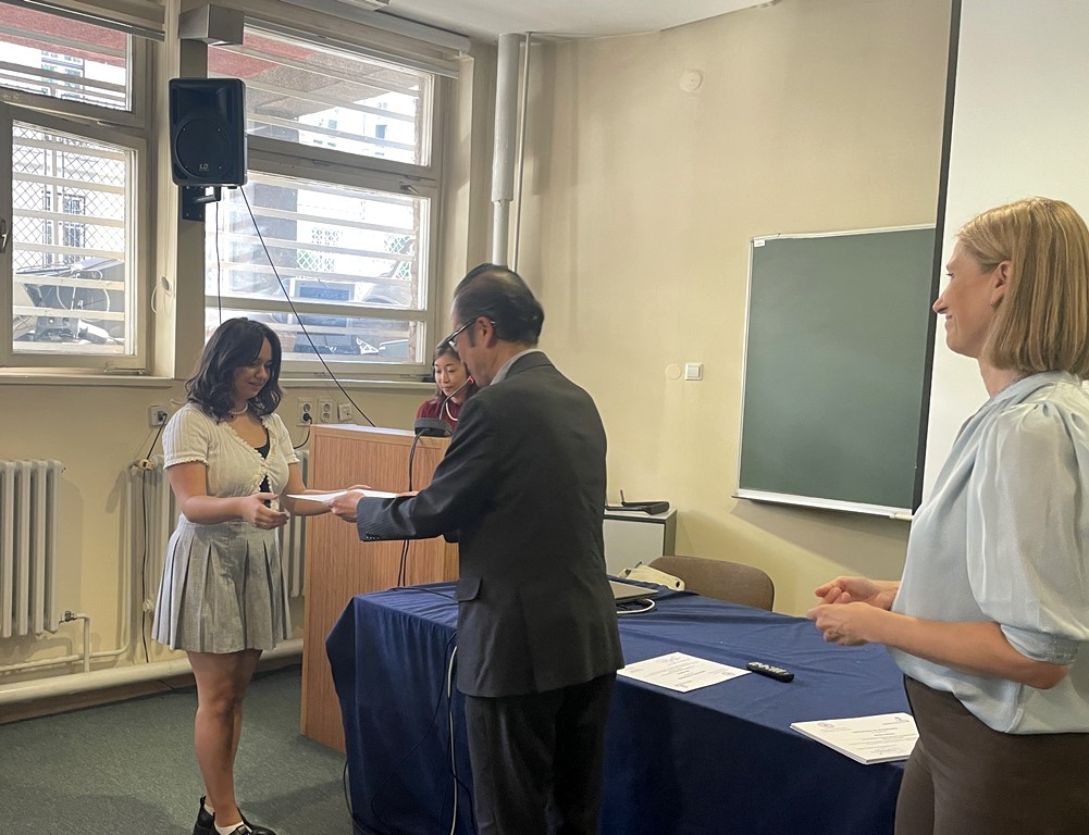 U srijedu, 13. septembra 2023. godine na Filozofskom fakultetu Univerziteta u Sarajevu održana je ceremonija dodjele certifikata za 27 svršenih polaznika Kursa japanskog jezika u akademskoj 2022/2023. godini. Ceremoniji su prisustvovali zamjenik šefa misije Ambasade Japana gospodin Takanori Hattor i prodekanesa za međunarodnu saradnju dr. Minka Džanko.