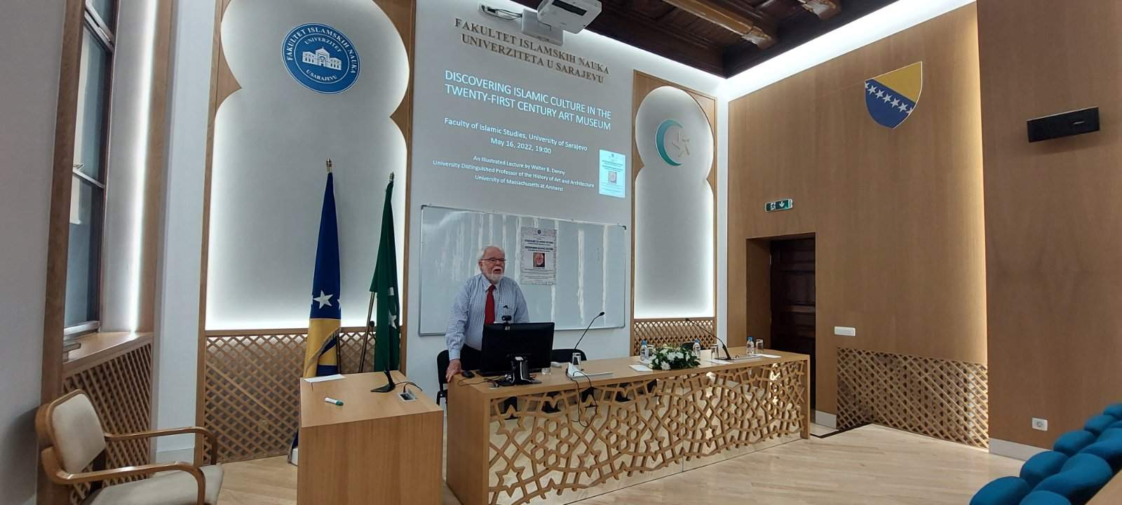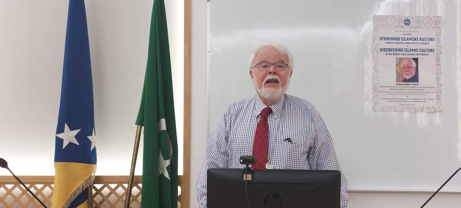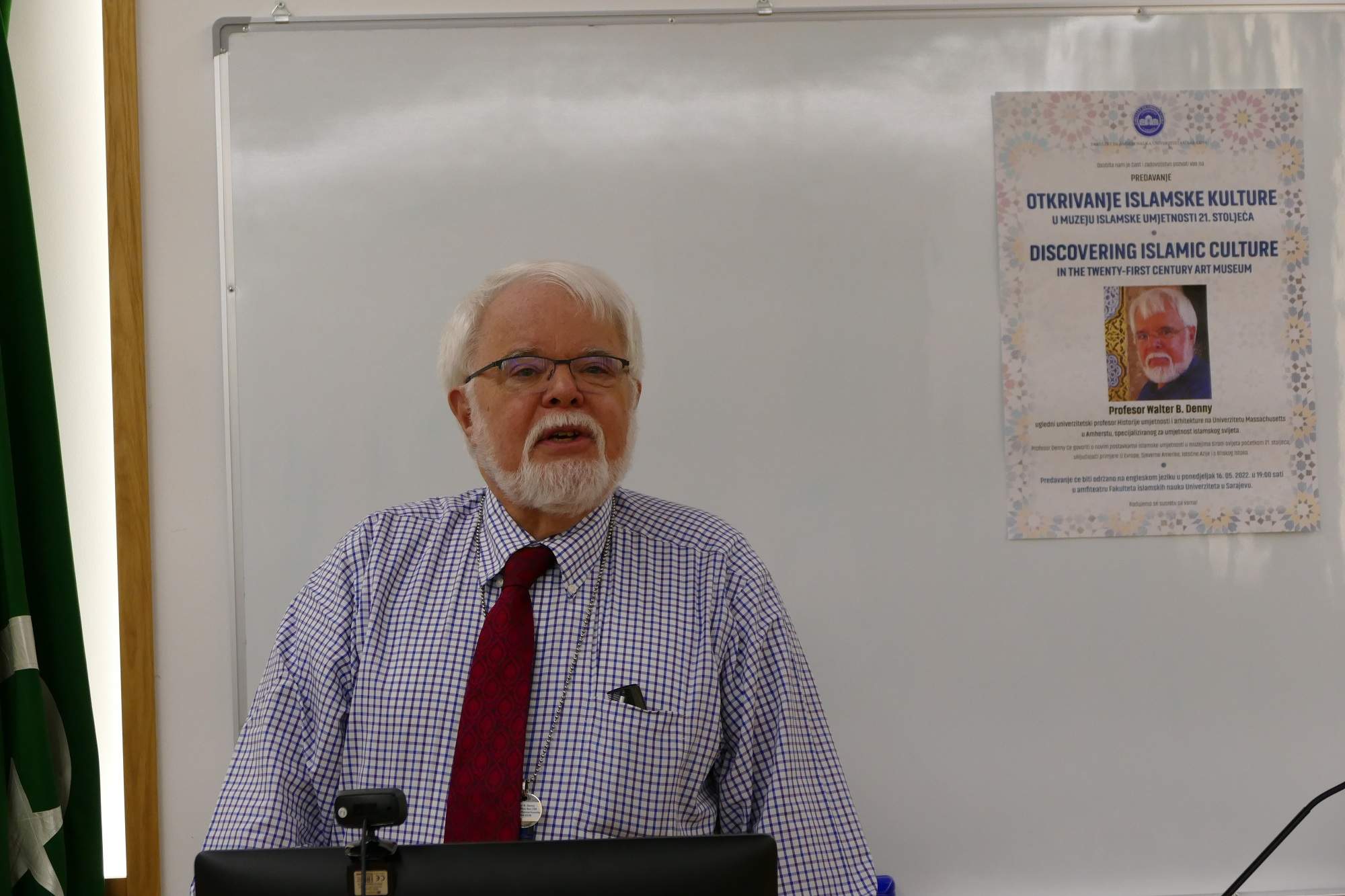 Na Fakultetu islamskih nauka u Sarajevu večeras je ugledni historičar umjetnosti i profesor s Univerziteta Masshachusetts Walter B. Denny održao predavanje o temi “Otkrivanje islamske kulture u muzeju islamske umjetnosti 21. stoljeća”.