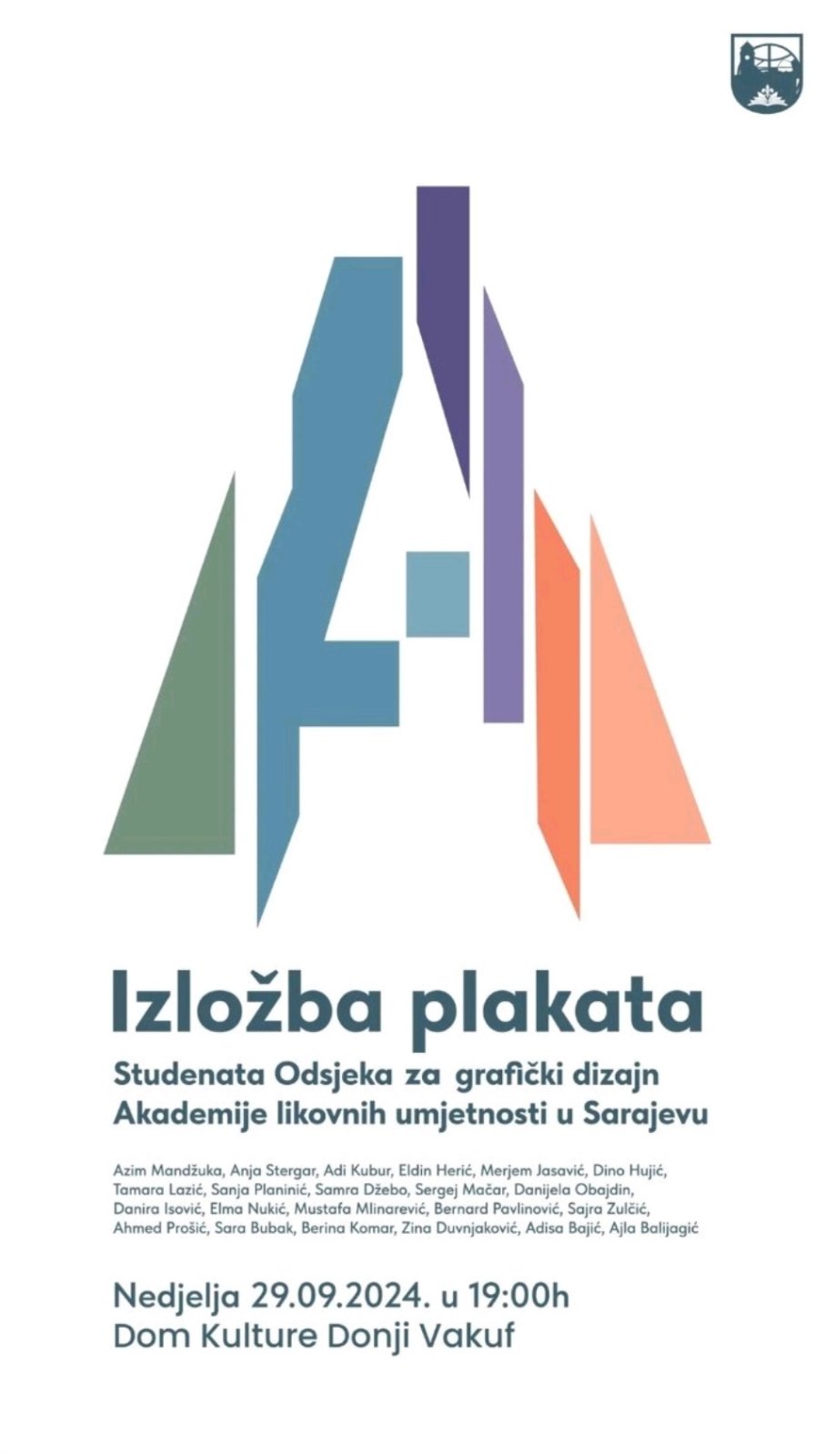 Studenti Odsjeka za grafički dizajn Akademije likovnih umjetnosti Univerziteta u Sarajevu, 29.09.2024. godine u Domu kulture u Donjem Vakufu, predstavili su svoje radove kroz izložbu „Izložba plakata studenata Odsjeka grafički dizajn Akademije likovnih umjetnosti“. Radovi su nastali u nastavnom procesu te učešću studenata u radionicama i konkursima. Svoje radove su predstavili sadašnji i bivši studenti Odsjeka grafički dizajn: Azim Mandžuka, Anja Stergar, Adi Kubur, Eldin Herić, Merjem Jasavić, Dino Hujić, Tamara Lazić, Sanja Planinić, Samra Džebo, Sergej Mačar, Danijela Obajdin, Danira Isović, Elma Nukić, Mustafa Mlinarević, Bernard Pavlinović, Sajra Zulčić, Ahmed Prošić, Sara Bubak, Berina Komar, Zina Duvnjaković, Adisa Bajić, Ajla Balijagić. Izložba ima za cilj da javnosti i budućim kandidatima predstavi dostignuća studenata u oblasti Vizuelnih komunikacija.