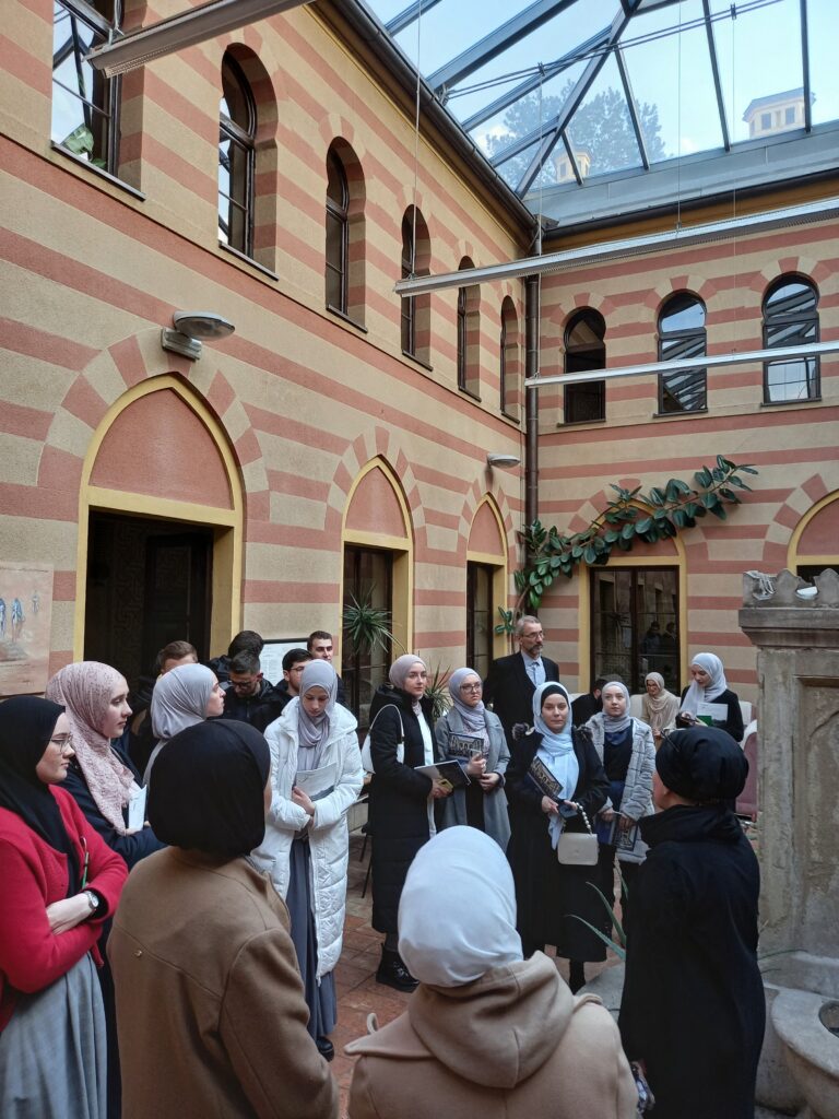 Maturanti Gazi Husrev-begove medrese koji pohađaju izbornu nastavu “Akaid-Fikh”, na čelu sa profesoricom Fikha, hfz. Behijom Durmišević, jučer su posjetili Fakultet islamskih nauka Univerziteta u Sarajevu. Učenike i prof. Durmišević primili su dekan Fakulteta, prof. dr. Zuhdija Hasanović i prodekanica za naučnoistraživački rad Fakulteta, prof. dr. Zehra Alispahić.