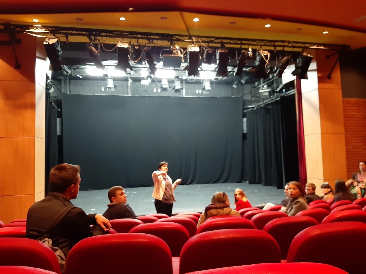 Studijska posjeta Mostaru je realizirana organiziranom posjetom Hrvatskom narodnom kazalištu u Mostaru. Studentice i studente je pozdravio direktor HNK Mostar Ivan Vukoja, te su zajedno sa zamjenicom direktora Kazališta Antonelom Pehar obišli zgradu HNK, garderobu, izložbu fotografija i plakata predstava ovog značajnog pozorišta u Bosni i Hercegovini. Studenticama i studentima je predstavljen kratak historijat Hrvatskog narodnog kazališta, repertoar i ostale aktivnosti koje su dio programa i strategije HNK Mostar. Antonela Pehar je istakla rad Dramskog studija mladih HNK Mostar koji predstavlja besplatni edukacijski program ove institucije namijenjen srednjoškolcima, studentima i svim mladim ljudima do 26 godina. Ovaj program se sastoji od različitih radionica, seminara i drugih različitih vidova učenja kada je u pitanju dramsko obrazovanje i dramski odgoj. Na ovaj način se mladi pripremaju i za aktivno učestvovanje u svojoj zajednici, poduzimanje inicijativa, jačaju svoje samopouzdanje i, što je veoma važno, jača se doprinos kulturi dijaloga kroz razmjenu stavova, mišljenja i vrijednosti sa drugim mladim ljudima. Učesnici projekta su svojim pitanjima za Antonelu Pehar i u razgovoru sa njom potvrdili značaj rada na razvoju kulturnih navika građana, naročito mladih te potvrdili značaj umjetnosti za razumijevanje i saradnju među ljudima u cijeloj Bosni i Hercegovini, s posebnim akcentom na grad Mostar.