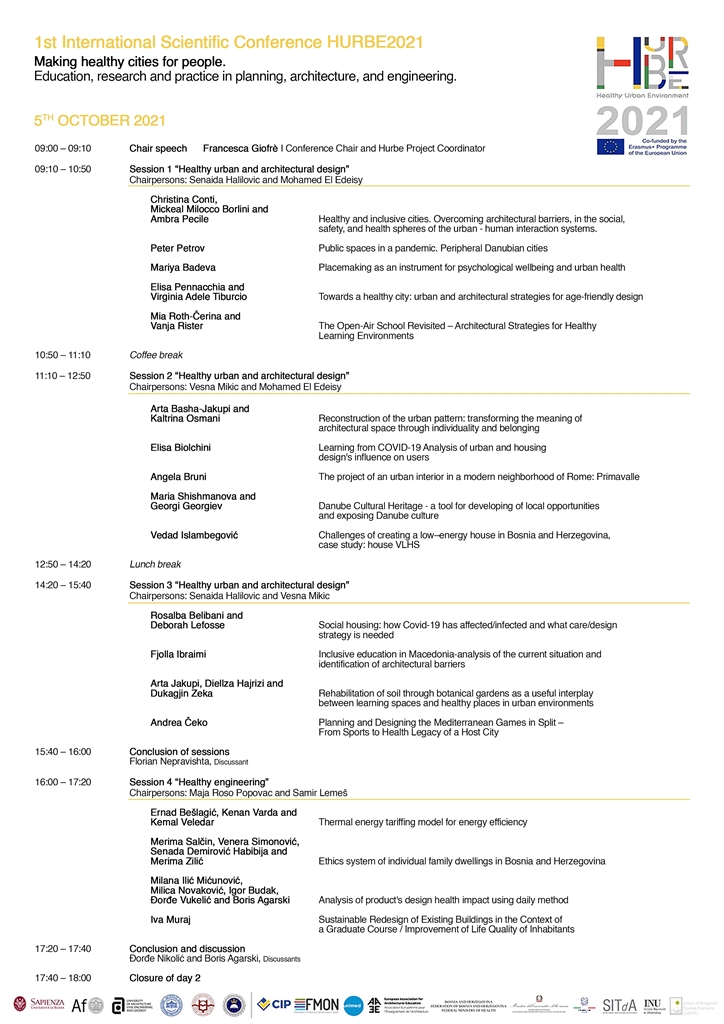 Konferencija HURBE2021 ima za cilj razmjenu interdisciplinarnih vizija, studija, planova, projekata i iskustava za stvaranje „zdravog grada“. Na konferenciji će biti predstavljena 32 naučna rada koja su prošla postupak dvostruke anonimne recenzije i koji će biti objavljeni u zborniku radova.